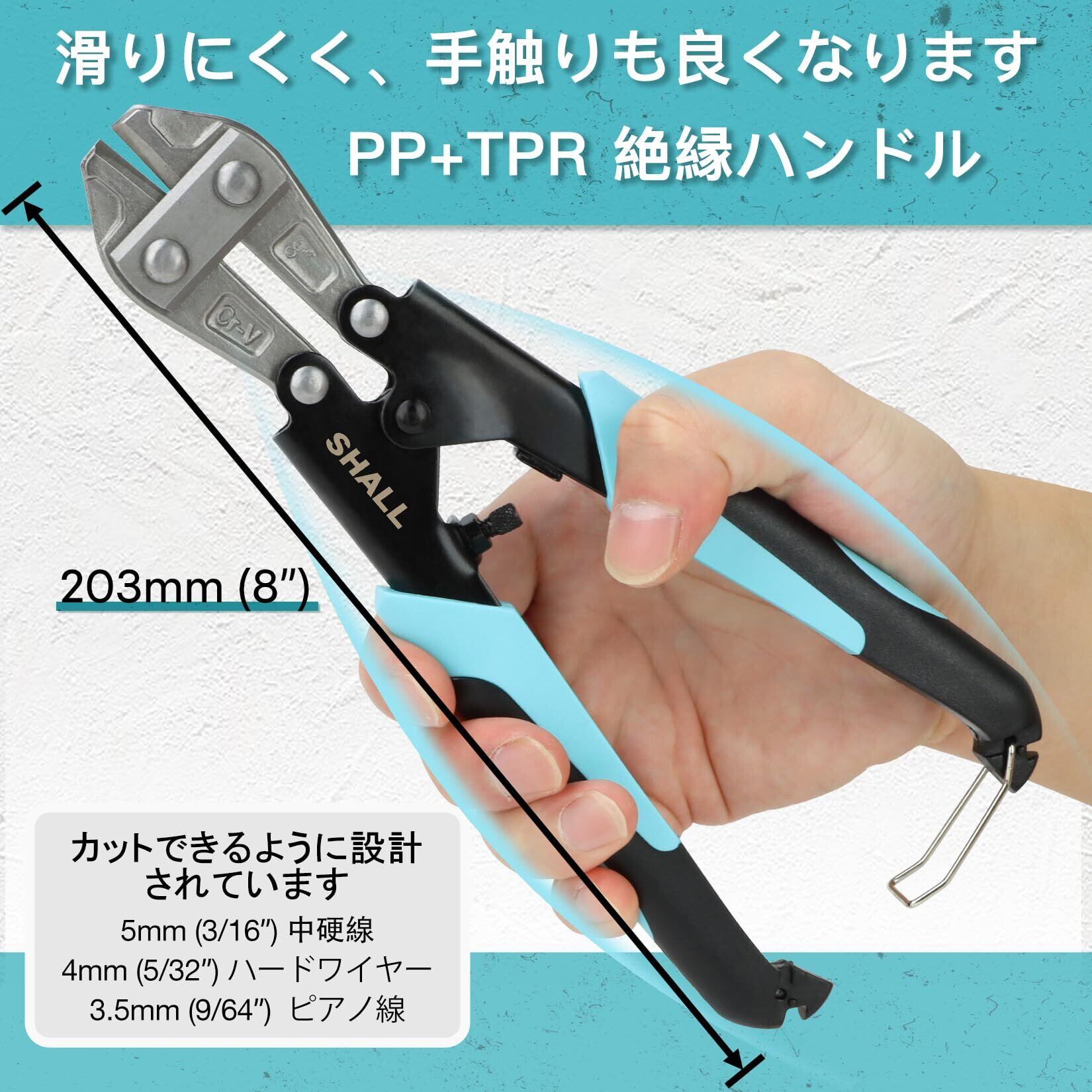 SHALL ボルトクリッパ ー ワイヤーカッ ー ボルトカッタ 210mm/8”高耐久ワイヤーカッター、CR-V鋼 ボルト 人間工学に基づいたハンドル、ベルトバッグ付属