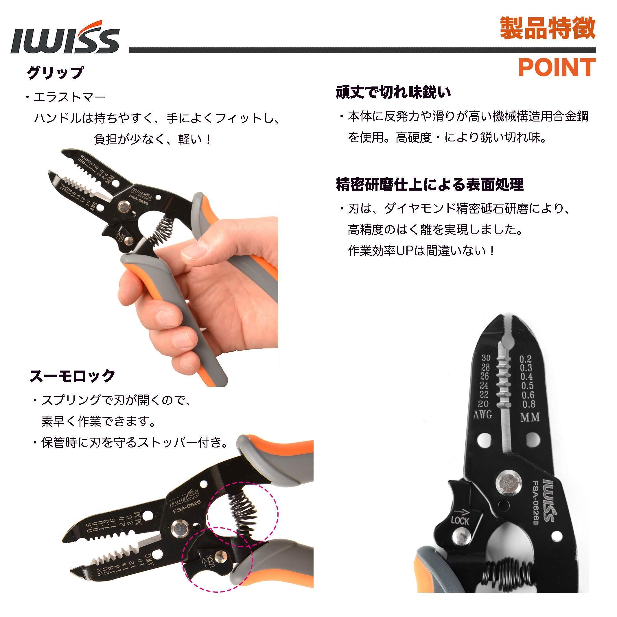 アイウィス(IWISS) ワイヤーストリッパー Φ0.25-0.8mm(30-20AMG) 細線用 FSA-0626B