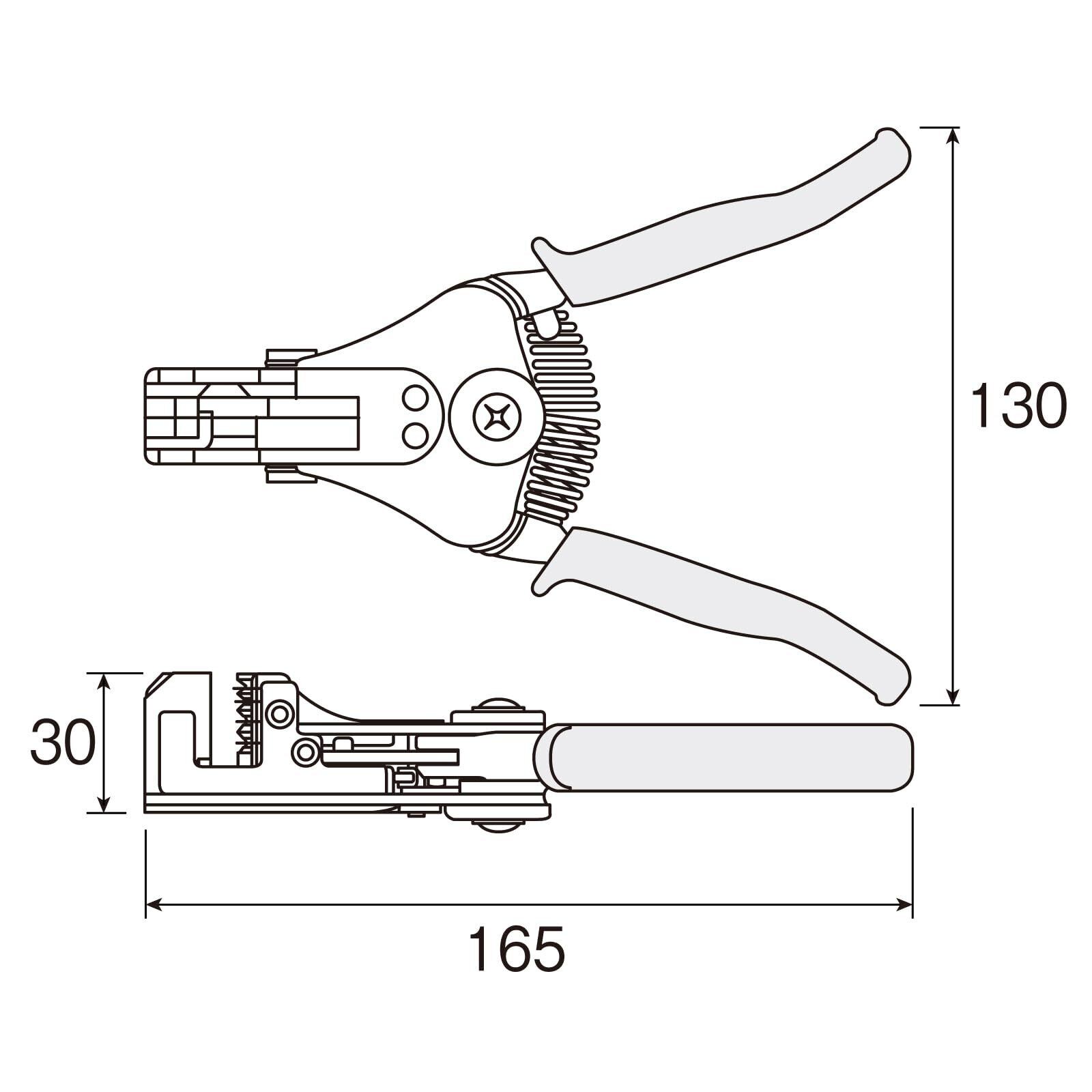 ・【適応電線】より線用:0.9/1.25/2.0/3.5/5.5mm^2【全長】165mm【重量】350g【ハンドル色】黒【付属品】P-918 ストリップゲージ ※取り付けには対辺2.5mmの六角レンチが必要です。【用途】電気工事、配線工事、電気回路、配線作業、電子工作