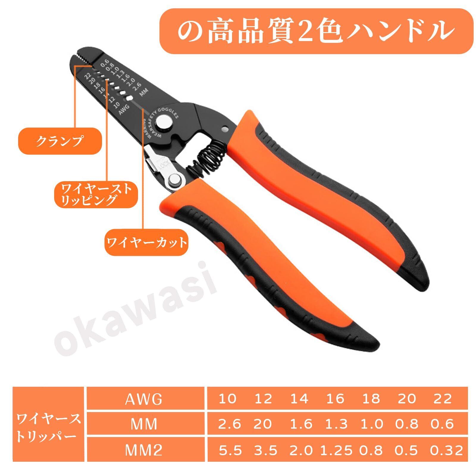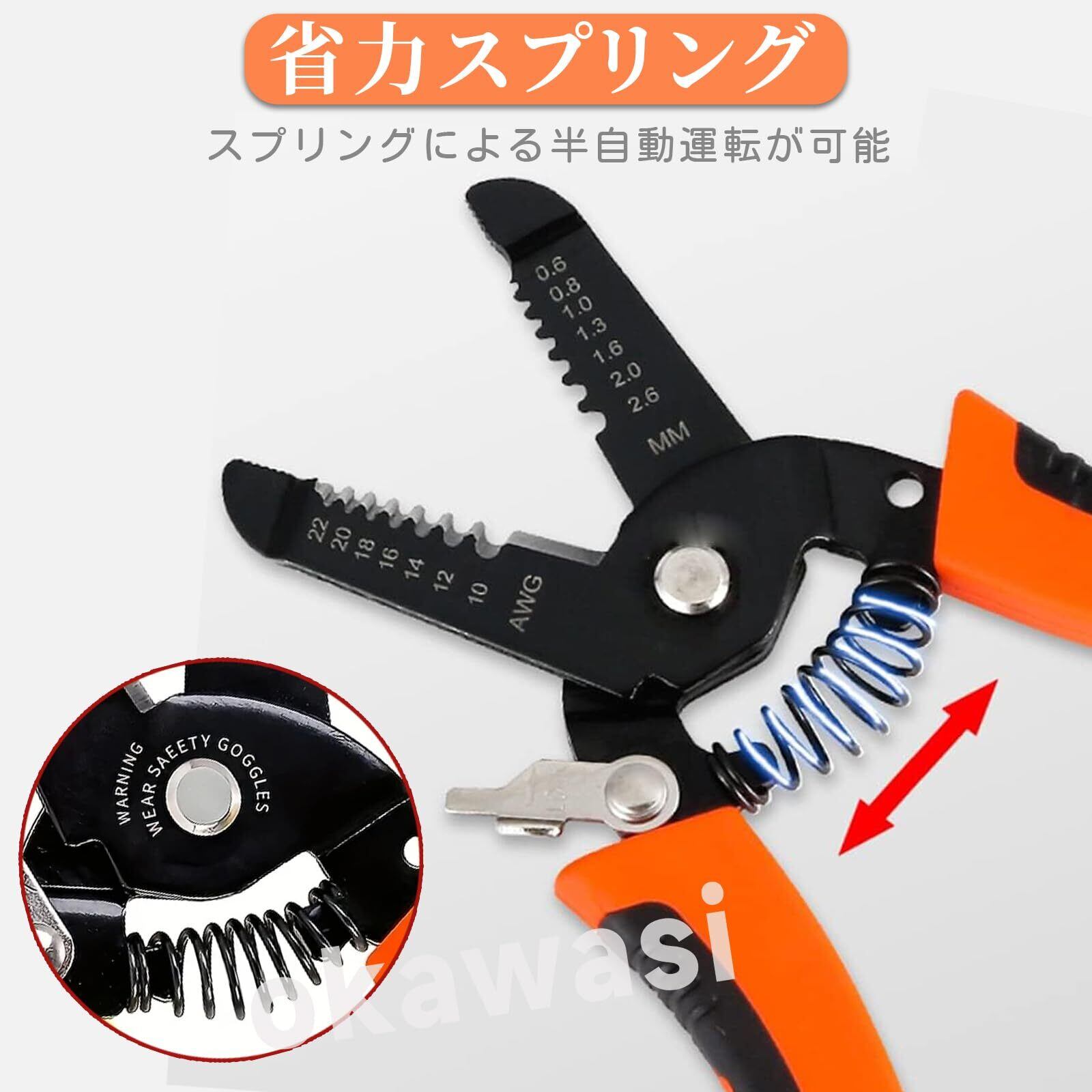 OKAWASI 多機能ストリッププライヤー ワイヤーストリッパー 電工ペンチ 0.6-2.6mm用 省力設計 滑り止めグリップ 安全ロック 疲れにくいコンフォートハンドル