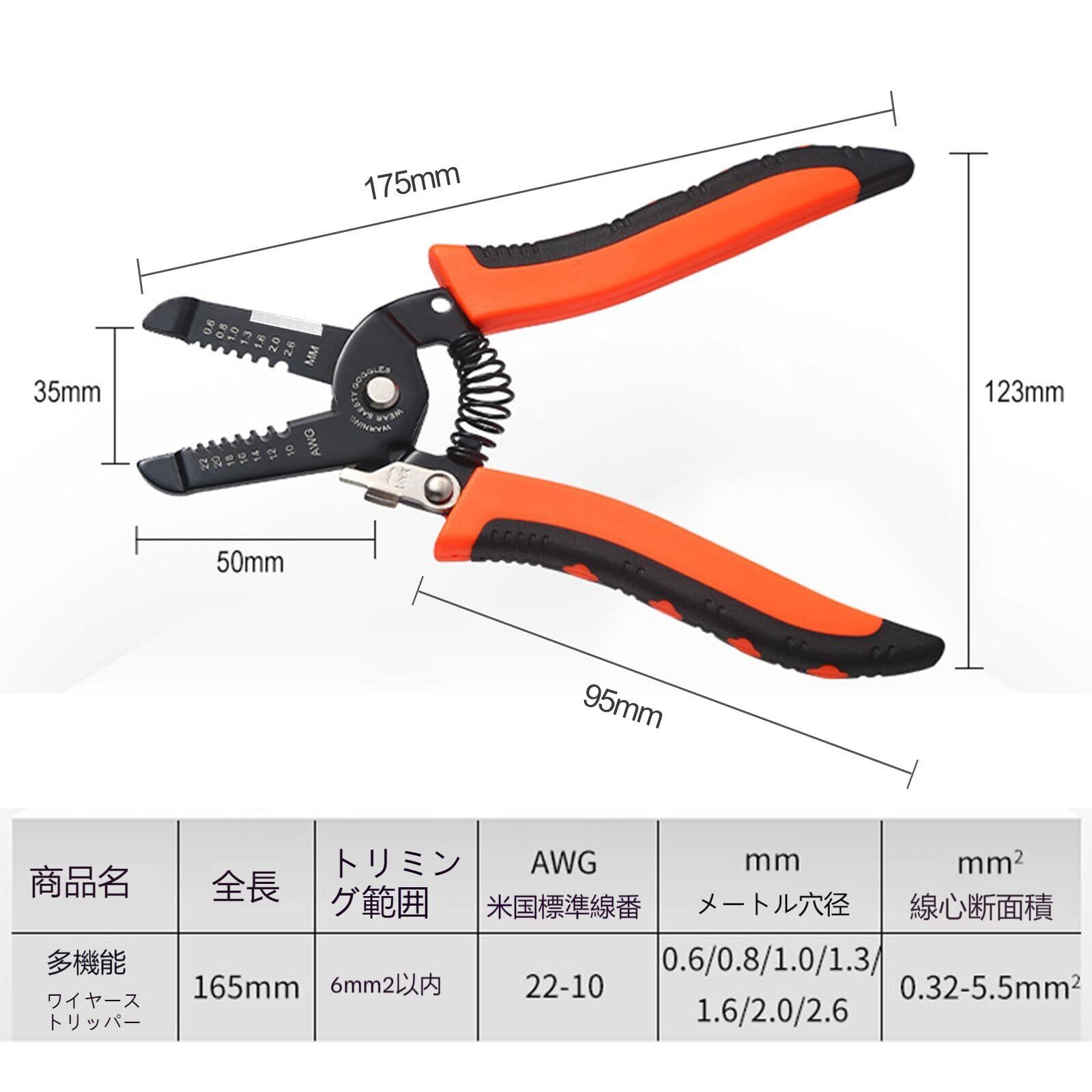 多機能ワイヤーストリッパー:0.6~2.6mmの幅広いサイズに対応し、ケーブルワイヤーや銅線を簡単に剥けます。