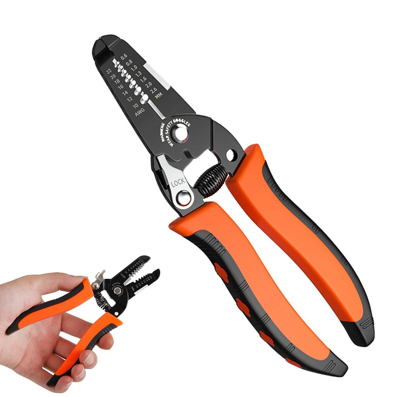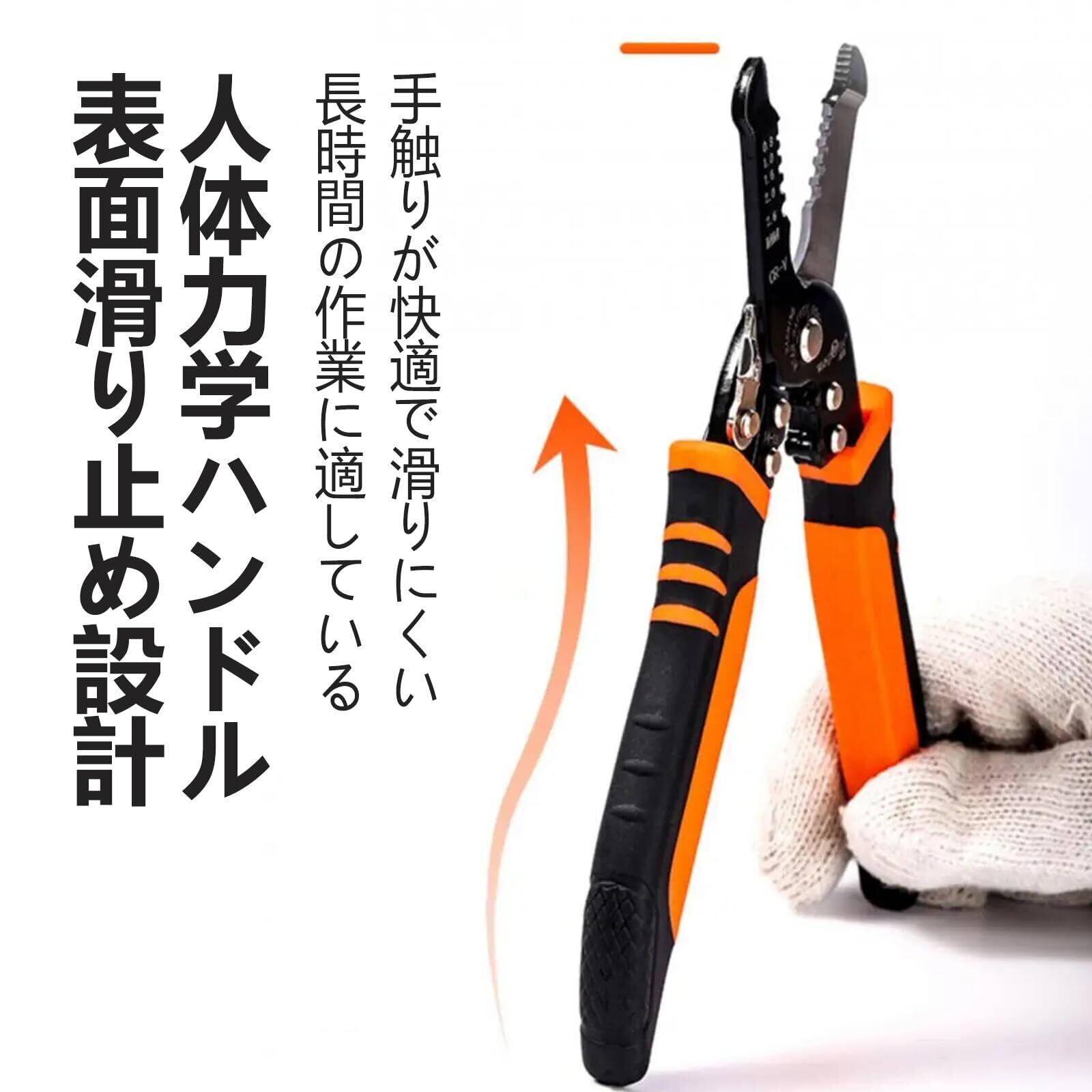 この多機能ワイヤーストリッパーは、0.6~2.6mmのソリッド銅線や撚り線、ケーブルワイヤーの被覆を効率的に剥がすことができ、電気工事やDIY作業に最適です。精密研磨された刃で高精度な作業が可能で、ハンドルは人間工学に基づいたデザインで長時間使用しても手の負担を軽減します。さらに、安全ロックと滑り止めパターンを搭載し、安全に作業できるため、プロの現場や家庭の配線作業にもぴったりです。