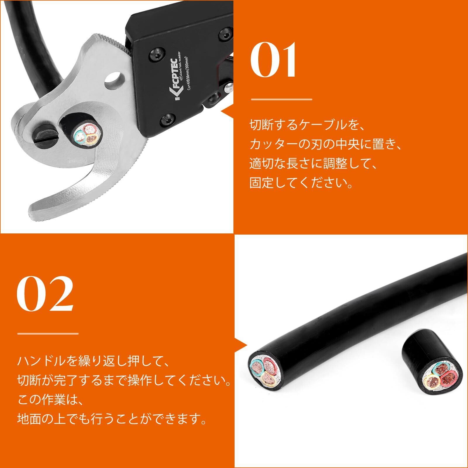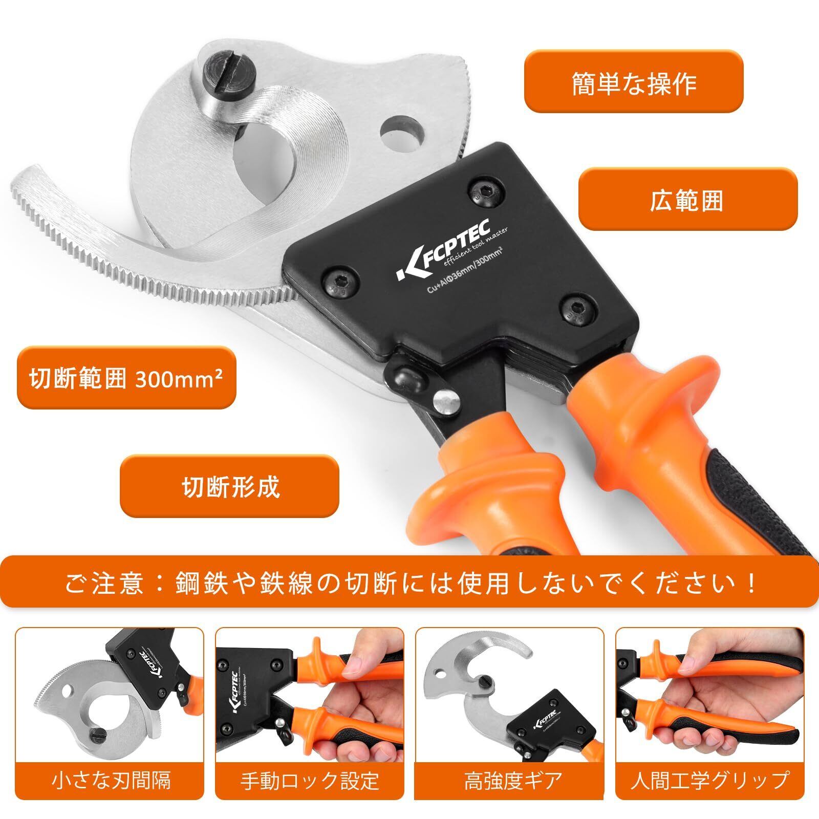 KF CPTECプロ用ラチェット式ケーブルカッター【最大300mm²対応】- 多機能高耐久アルミニウム及びマルチコアケーブル適用、作業効率向上