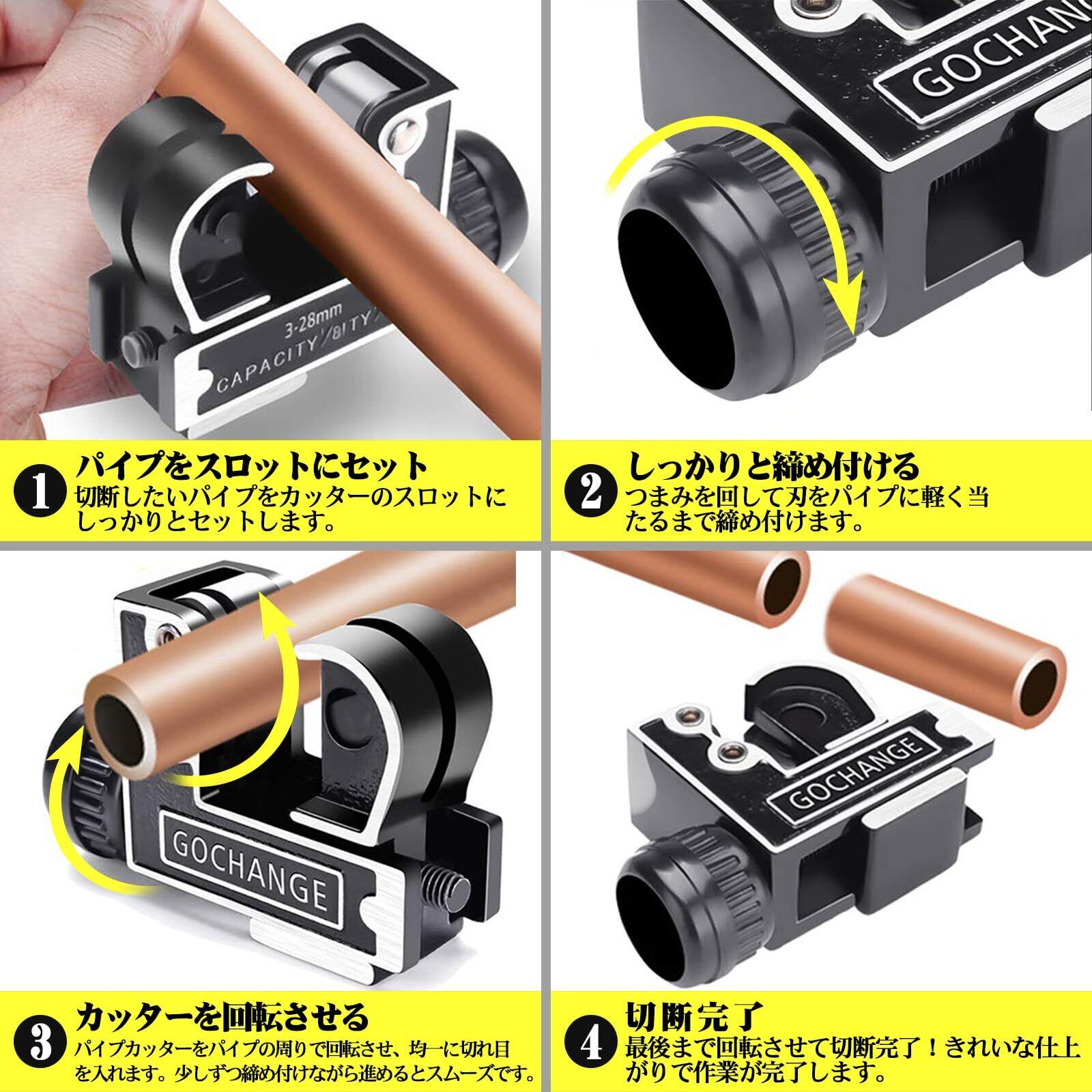 適用:柔らかい銅、硬い銅、アルミニウム、真鍮のチューブや薄いパイプを切断するのに最適。 注意!アクリルチューブ、自転車のサドルやハンドルの切断には向いていないので注意!柔らかいチューブ、あるいは厚さが3.8mm以下のチューブ専用。