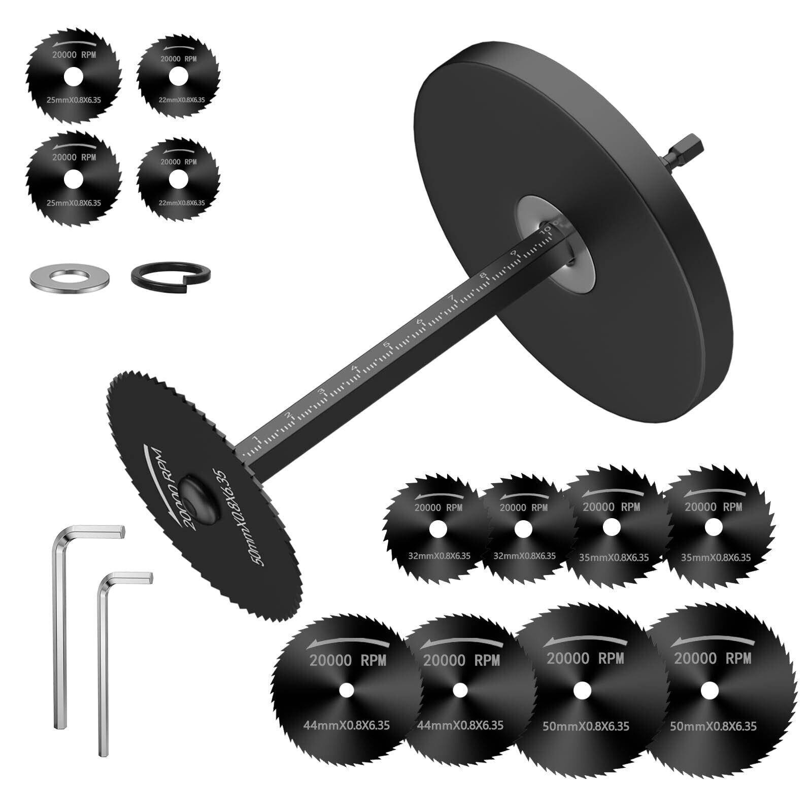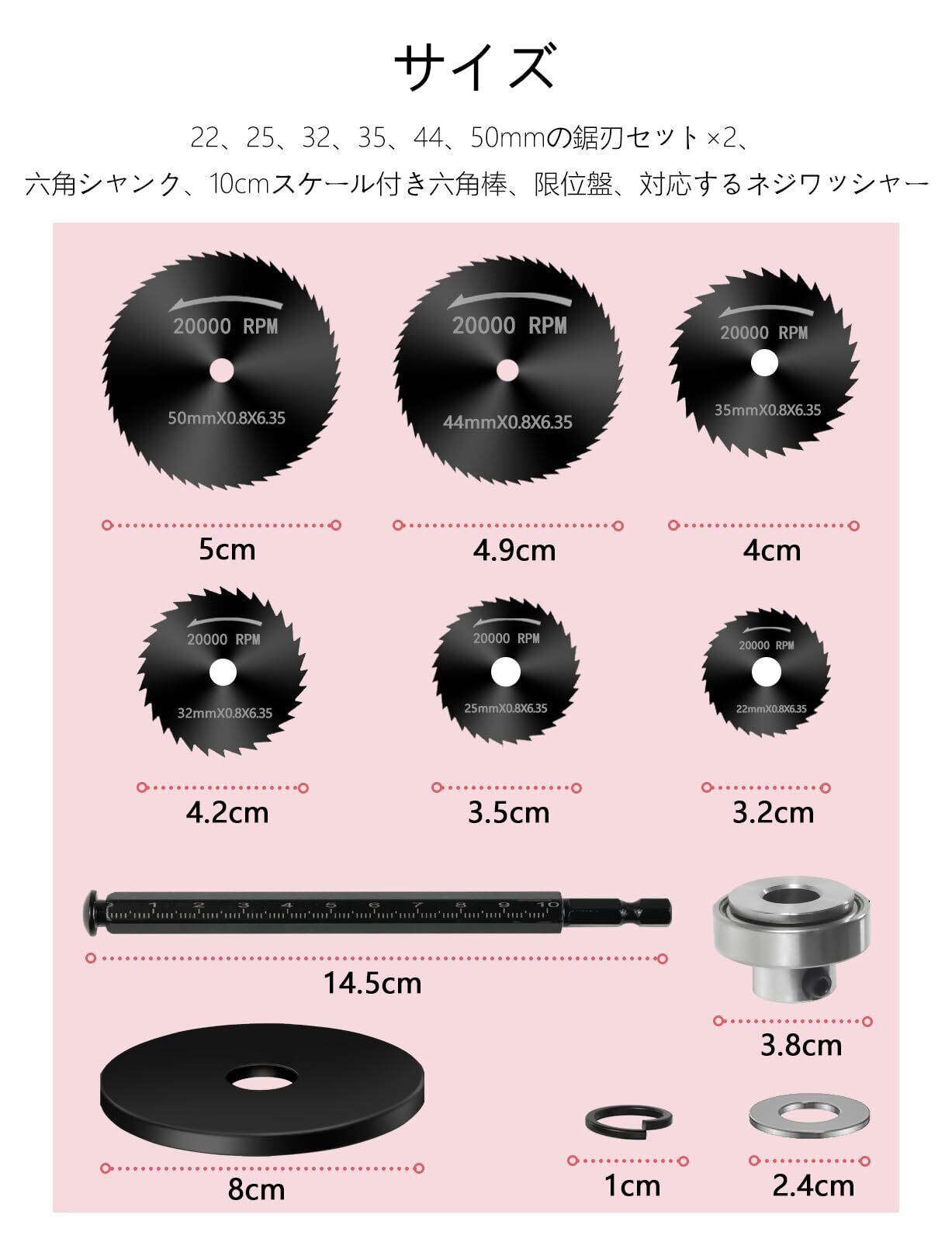 【アフターサービス】包装内容は22、25、32、35、44、50mmの鋸刃セット×2、六角シャンク、10cmスケール付き六角棒、限位盤、対応するネジワッシャー。商品の不良や破損等ございました折はメールにてご連絡を下さいませ。迅速にご返金、もしくは新品を再発送させて頂きます。