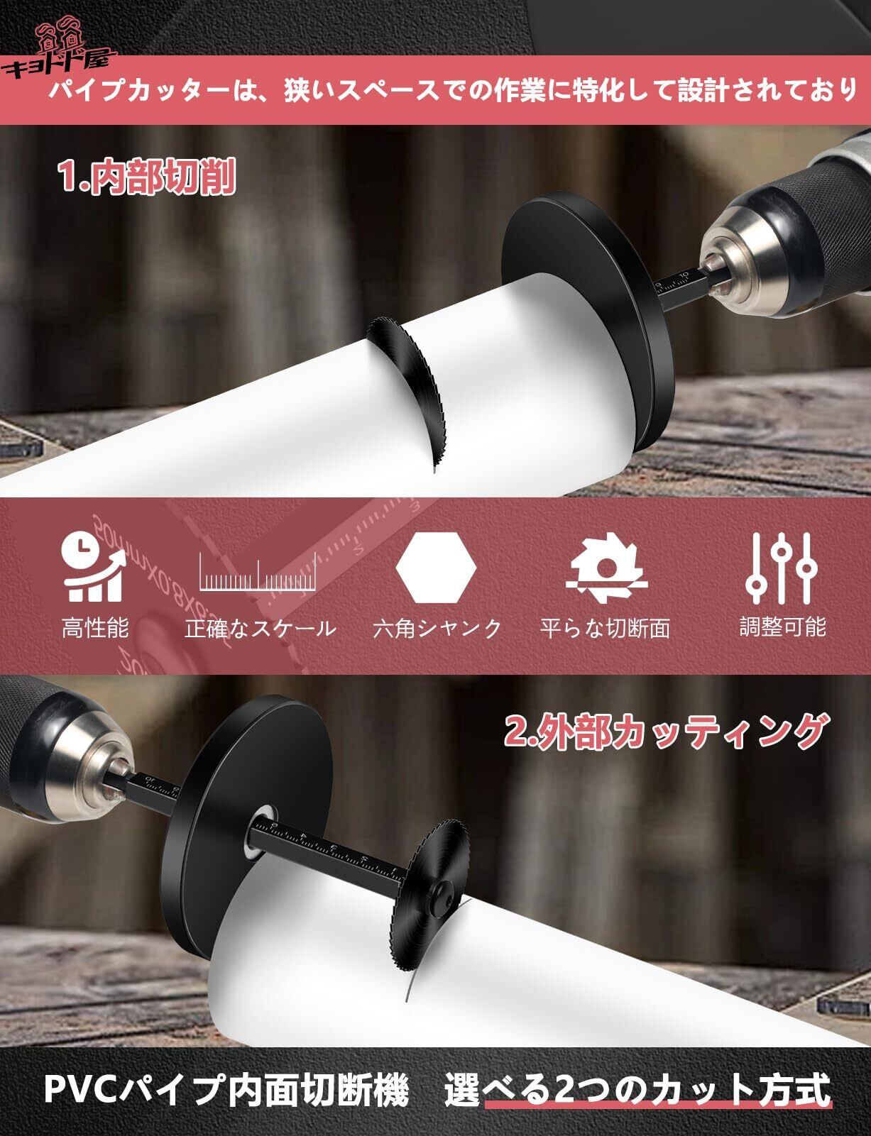 キョドド屋 パイプカッター 内側パイプ切断シート 10cmスケール付き六角棒 12枚マンガン鋼鋸刃 限位盤 取り付け六角シャンク ネジワッシャー PVC 木材 プラスチック 薄板 銅板 アルミ板などに対応 | KSショップ