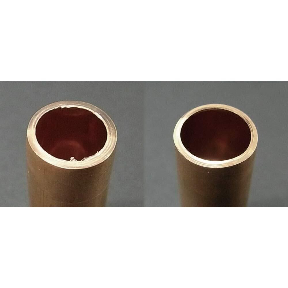 ●今までにない切りを実現! ●一般冷媒配管用銅管専用チューブカッター●極薄丸刃の採用でバリの大きさが当社従来機比で約50%削減●自動送り機構で誰でも簡単にきれいな仕上がり●刃部にカバーが付いた安全設計●替刃のは工具レスで簡単に行えます●2015年度グッドデザイン賞受賞【用途】●家庭用ルームエアコン工事に最適です。●一般冷媒配管用銅管専用カッター【注意・使用条件】●適合パイプ以外の切断に使用しないで下さい●刃の先端は非常に鋭利になっていますので、直接触れないでください。指などを切る恐れがあります。●作業時や丸刃時など丸刃の取り扱いには十分注意してください。●カバーを外してのご使用はお止めください。丸刃が霧出するため、作業時のけがの原因となります。●作業時や丸刃時など丸刃の取り扱いには十分注意してください。●パイプを切断した後の切りは鋭利になっておりけがの恐れがあります。取り扱いに注意ください。●適合パイプ以外の切断に使用しないでください。●改造しないでください。けがの原因となる恐れがあります。●使用しない場合は子供の手の届かない、乾燥した場所に保管してください。けがの恐れがあります。