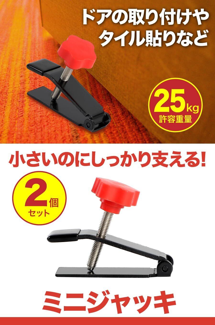 【高さ調節に便利】ドアの取り付けやタイル貼り、ウォールミラーの設置など高さ調整する必要のある作業に便利なミニジャッキです。ドアジャッキ、ドアリフター、ミニ昇降器、DIY道具など幅広くお使い頂けます。