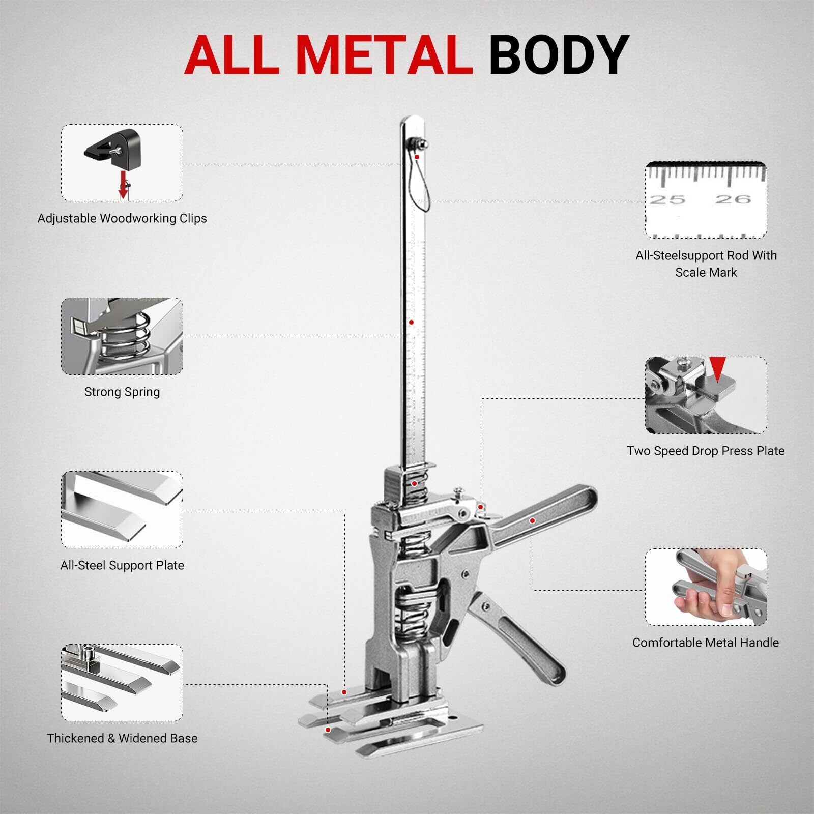 【幅広い用途】: 多機能ハンドリフティングツールは、木工クランプとして伸縮可能で、木工作業の建設に使用できます。ドアリフト、木製パネルリフト、キャビネットジャック、床ジャック、ドライウォールリフト、壁タイル高さ調整器などに適しており、リフティング高さは容易に制御できます。