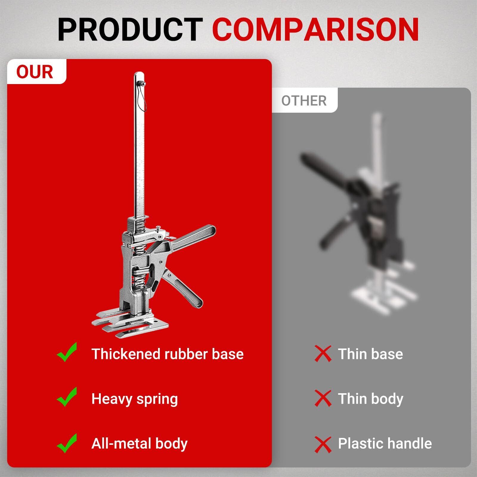 【金属構造】: 労力節約アーム2024 15インチの高さに立ち、この堅牢なツールは高品質のステンレス鋼で作られており、ハンドルは軽量で丈夫なアルミニウム合金で構成されています。ハンドリフティングジャックツールは最大440ポンドの負荷を簡単に支えます。