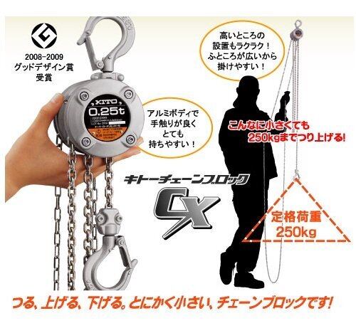 KITO(キトー) 手動チェーンブロック CX形 定格荷重250kg 揚程2.5m ハンドチェーン2m 小型・軽量 【選べる定格荷重】 CX003