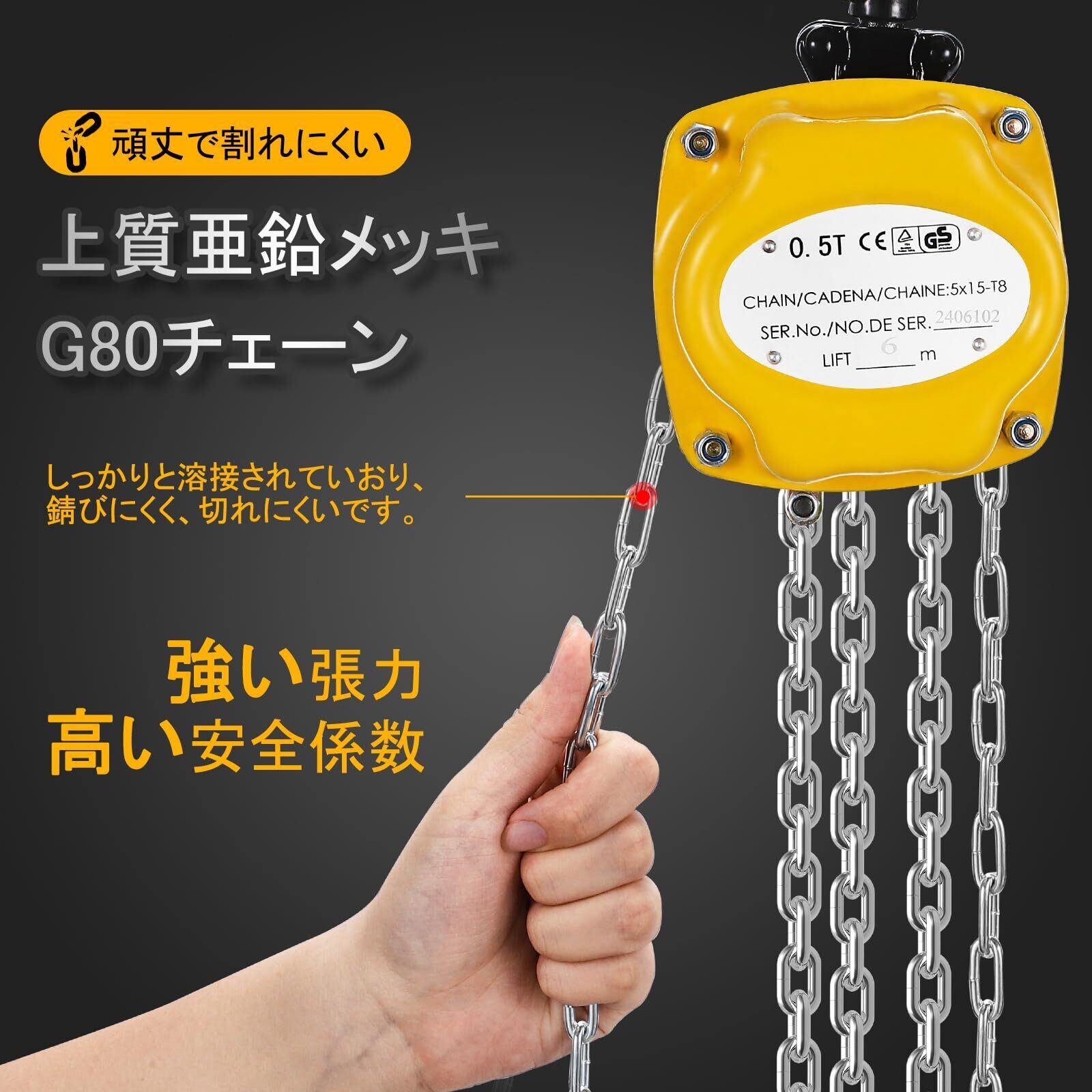 NEWTRY チェーンブロック 0.5t 6m 手動 500kg 軽量 ミニサイズ コンパクト設計 携帯しやすい 合金鋼 耐腐食チェーン 工場/倉庫/DIY用 安全ロック付き 吊り上げ 荷揚げ チェーンローラー チェンブロック 日本語マニュアル同梱 (0.5T) | KSショップ