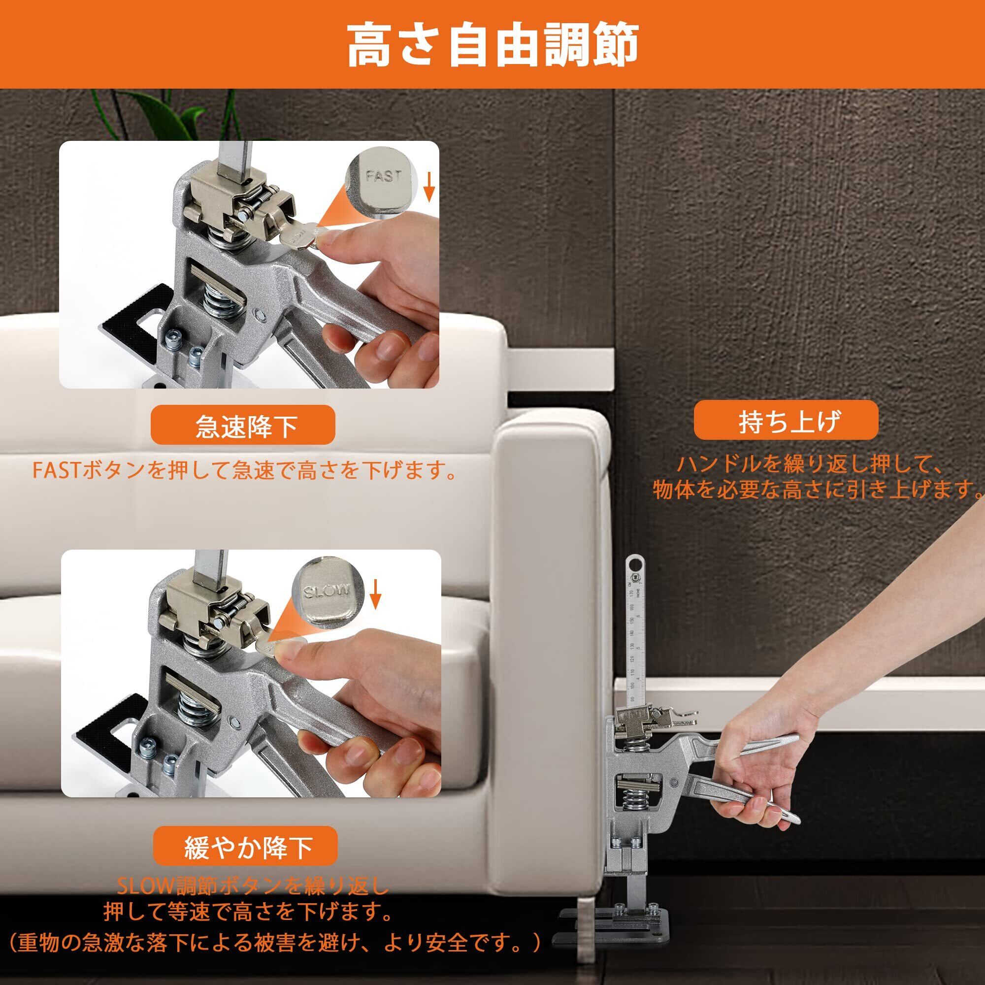 【多用途応用】物の落下を防ぎ、長時間バランスを維持できるため、生産性が効果的に向上し、作業が容易になります。また、ソファ、ベッド、家電製品を持ち上げて掃除を効率よく行うことができます。ドア、窓、家具、キャビネットの設置にも使用できます。