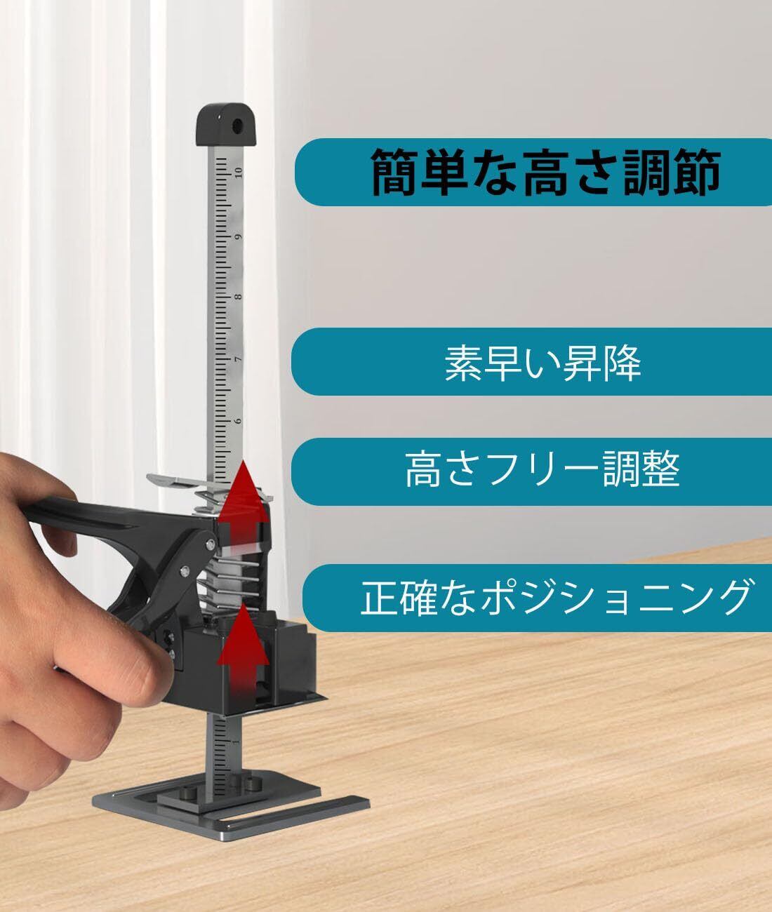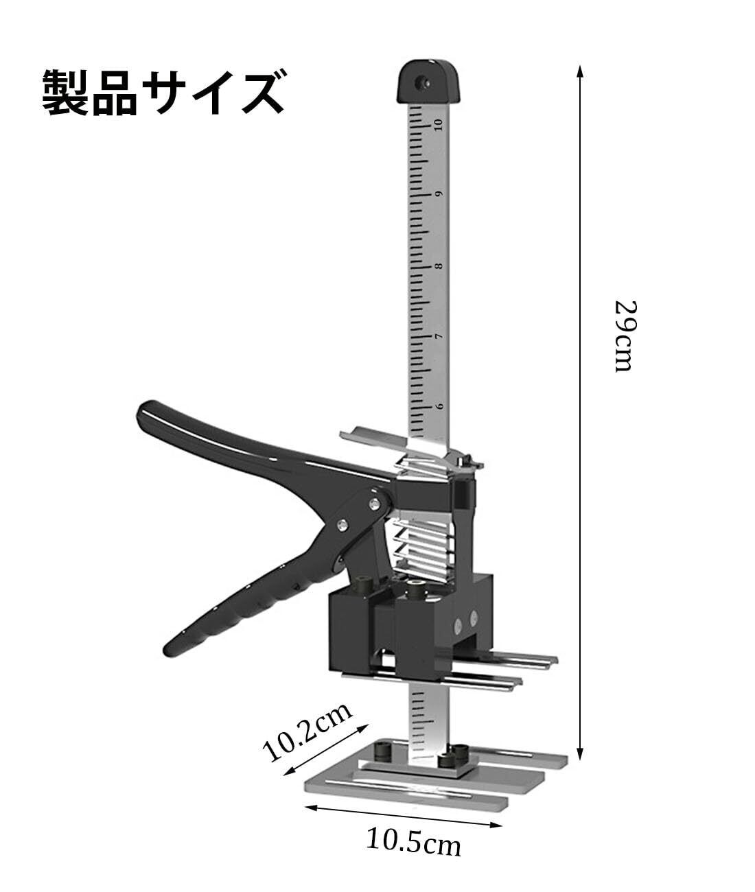 【革新的なデザイン】ハンドヘルドのデザイン、快適で省力化。 正確な目盛りと厚みのある頑丈なガイド レールにより、自由な高さ調整と正確な位置決めが可能です。 ハンドルを握ると素早く上昇し、ボードを軽く押すと素早く下降します。 設置者が簡単に作業を完了し、疲労を軽減し、効率的に作業するのに役立ちます。