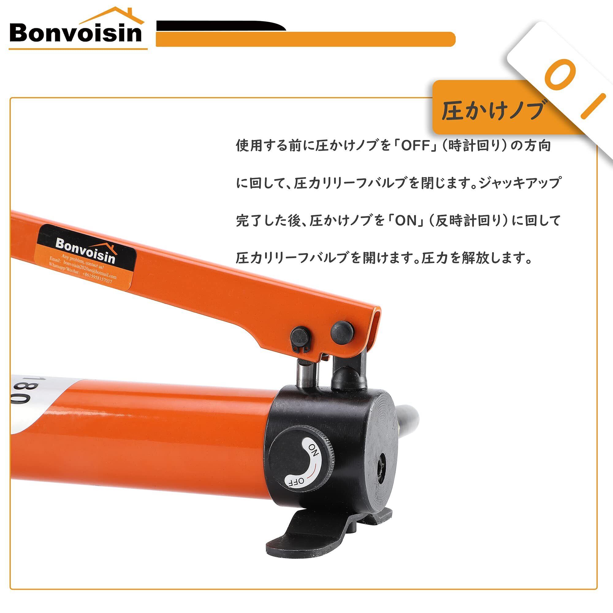※【幅広い応用】Bonvoisinの油圧ジャッキは、電力、化学、鉄鋼、橋梁、造船、機械などの産業で広く使用されています。油圧ポンプ単体をご購入したい場合、で「B09GB61MXH」を検索して購入できます。