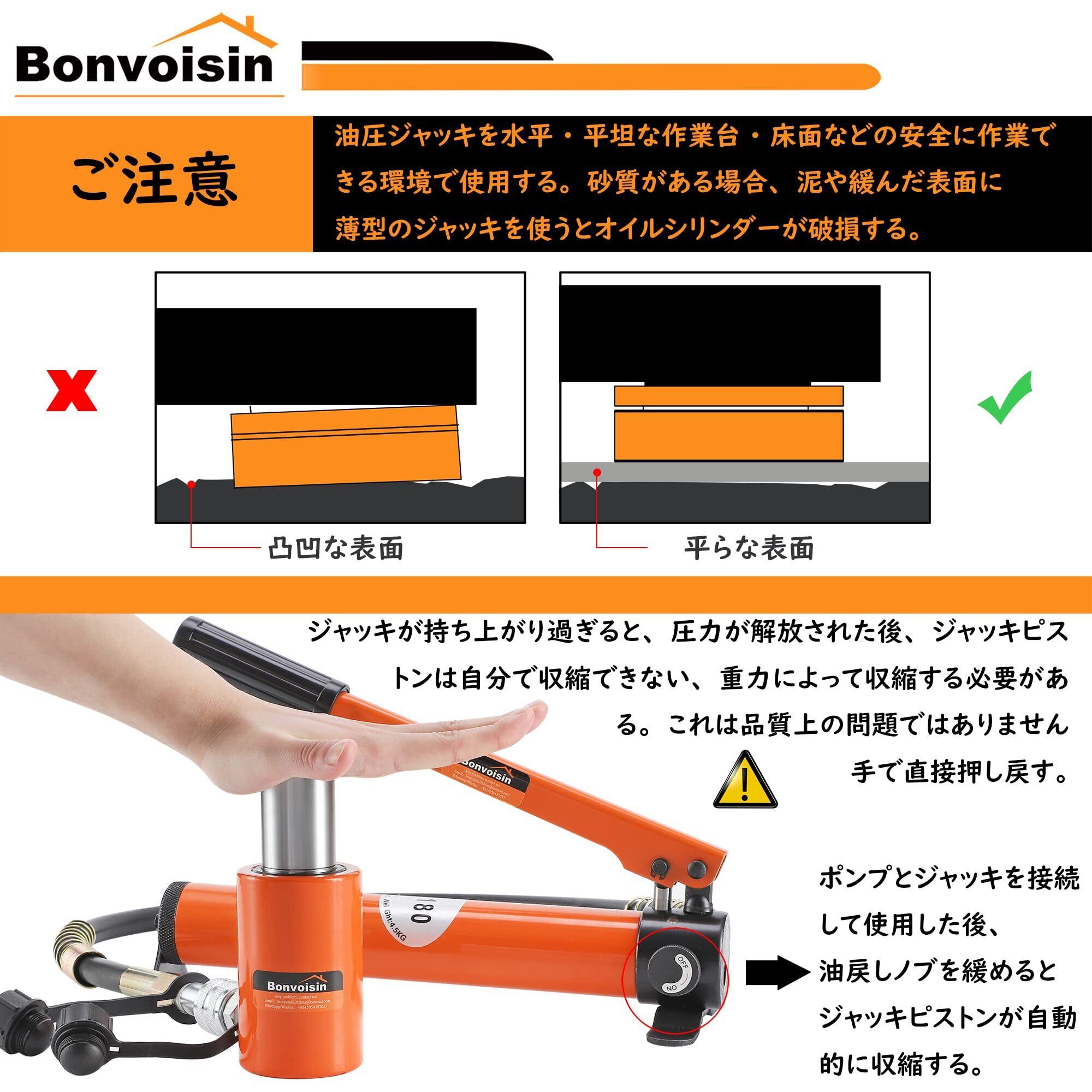 Bonvoisin 油圧ジャッキ ボトルジャッキ 小型 揚力10t 軽量 建築 機械 災害救援 狭い場所 日本語取扱説明書付き (10Tジャッキ+CP-180)