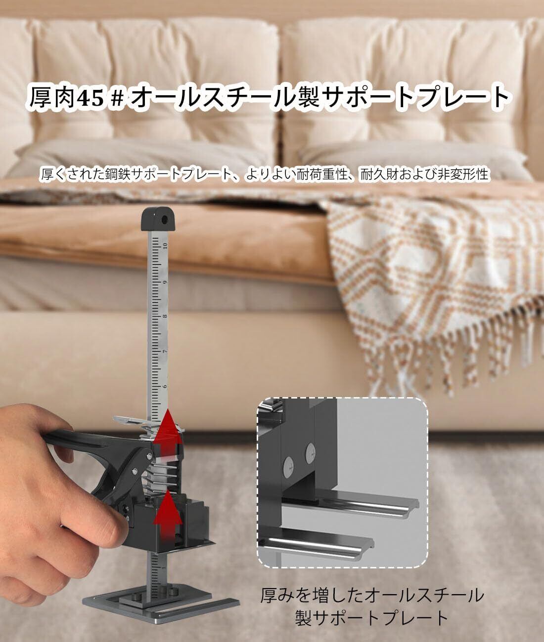 【240kgの耐荷重】最大240kgの吊り上げ能力により適用範囲はほぼ無制限です。 ドア、窓、キャビネットの設置やフローリングやポーチ、デッキ、フレームワークの構築も、このツールを使用する絶好の機会です。