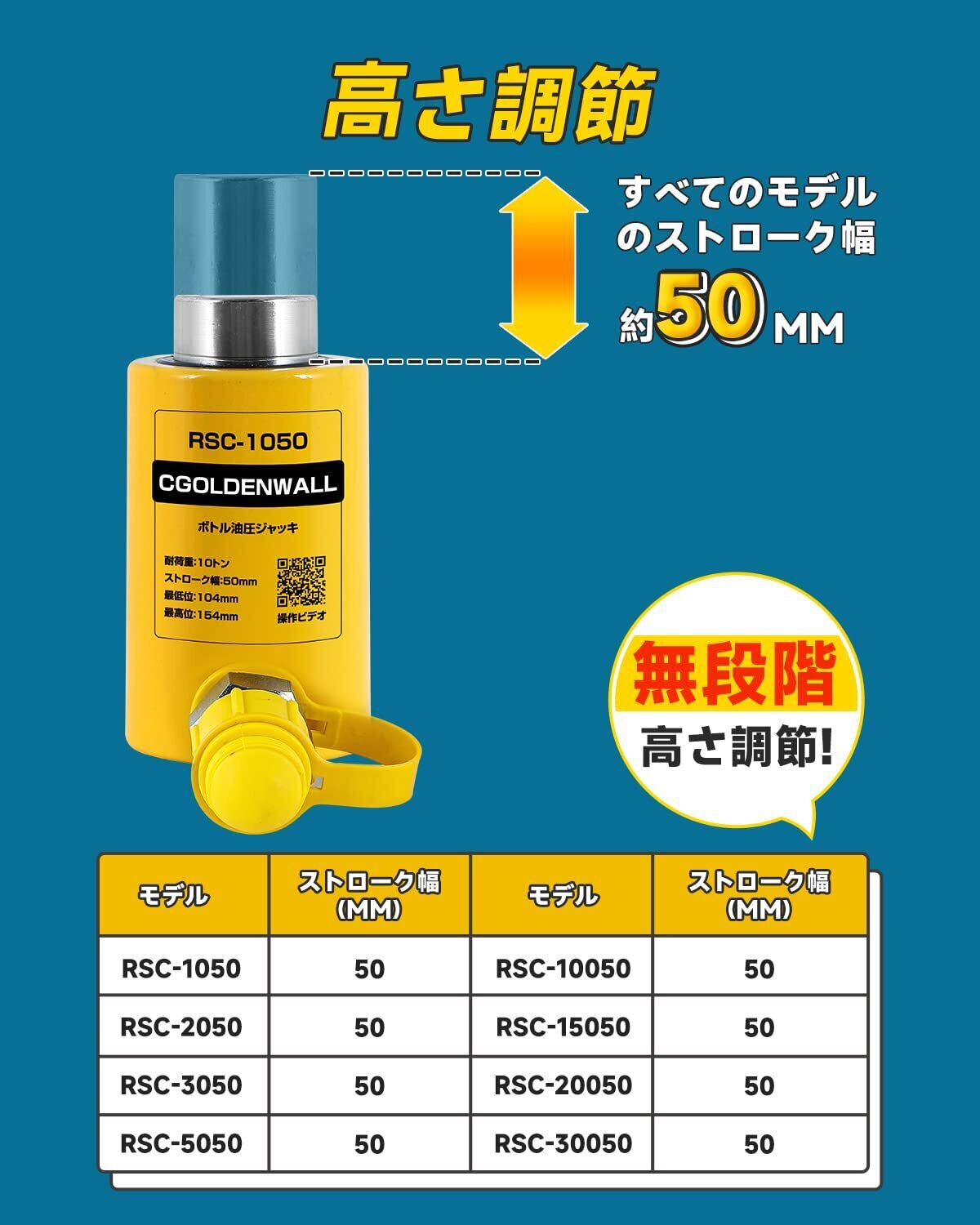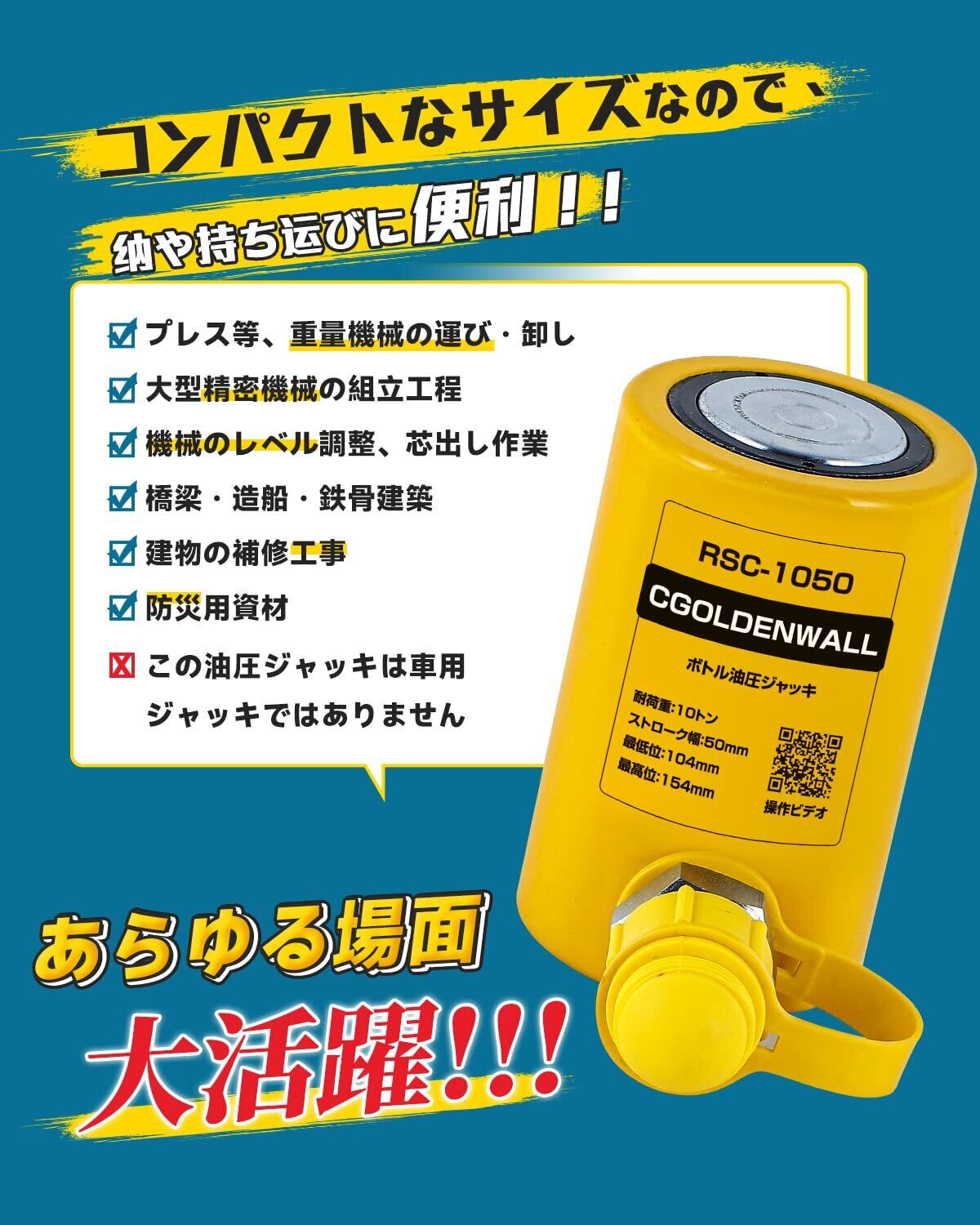 CGOLDENWALL 油圧ジャッキ 揚力10トン ボトルジャッキ 小型 コンパクト 持ち上げる高さ50mm 持ち運び簡単 狭いスペースに最適 ポンプ別売り 「日本語取扱説明書あり」 (10トンジャッキのみ)