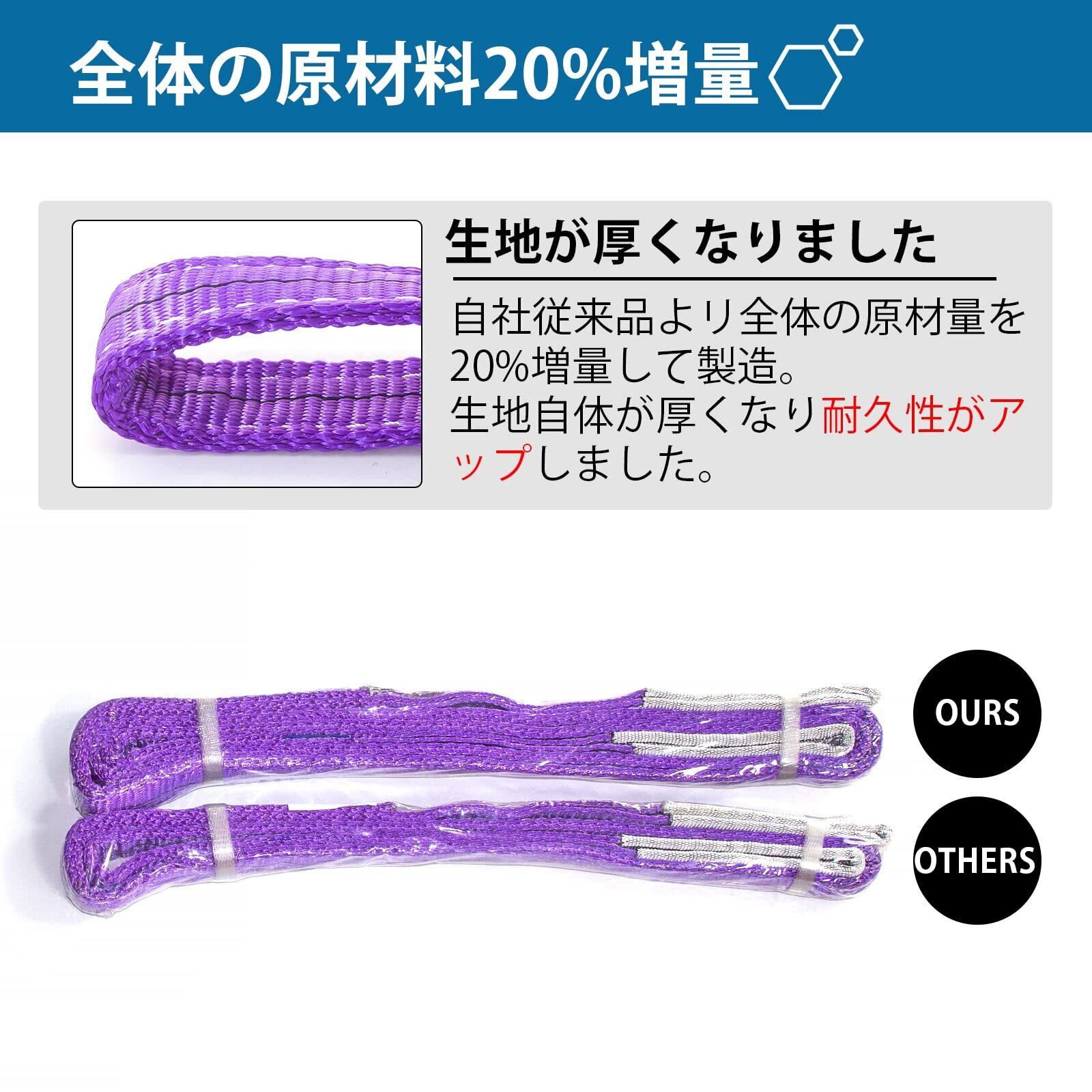 【商品仕様】■全長:2M ■ベルト幅:30mm ■紫 最大使用荷重:1000kg (ストレート吊の場合) ■安全係数:7