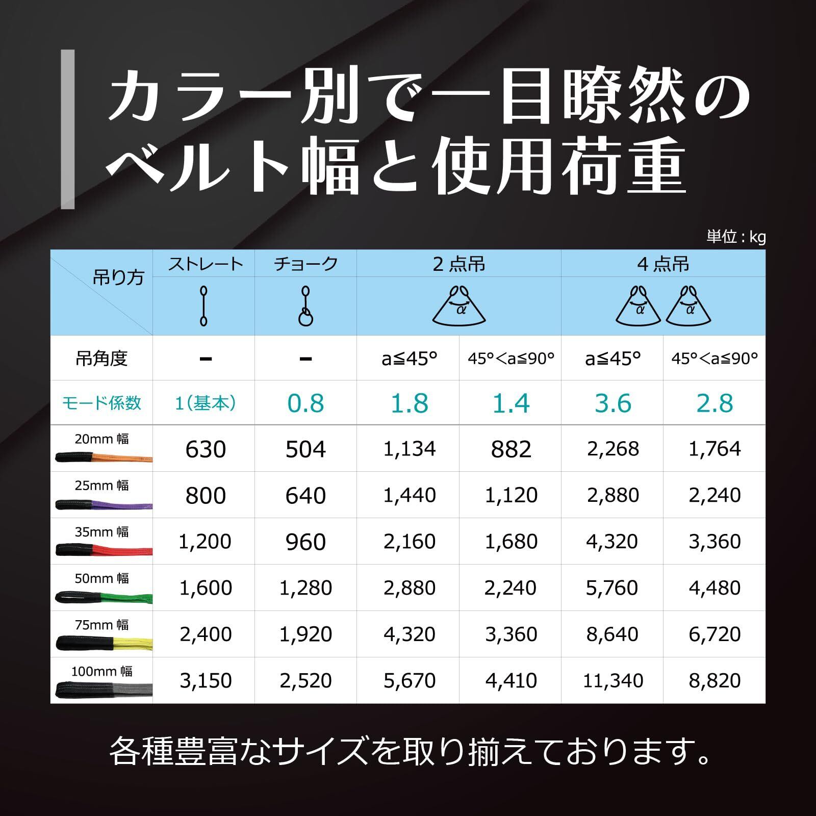 玉掛け作業に大人気のポリエステル繊維のスリングベルト、ナイロンスリングより伸びに強く安定した荷の吊り上げが可能です。