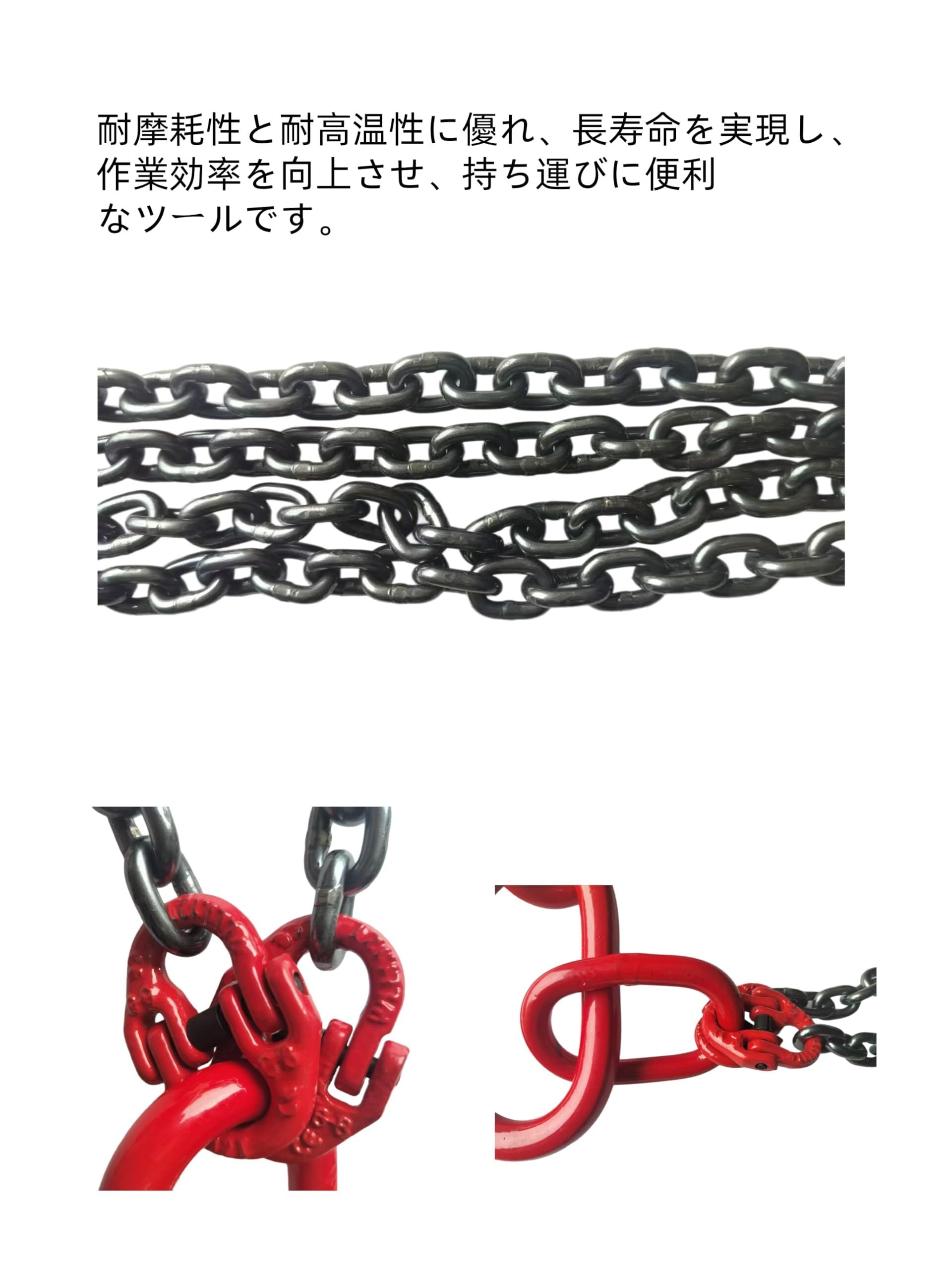 4本チェーンスリング 1.5mスリングチェーン 耐荷重3t径6mm 吊りスリングフックタイプ吊りベルト吊りクランプ吊り具チェーンフッカーフック付きチェーン