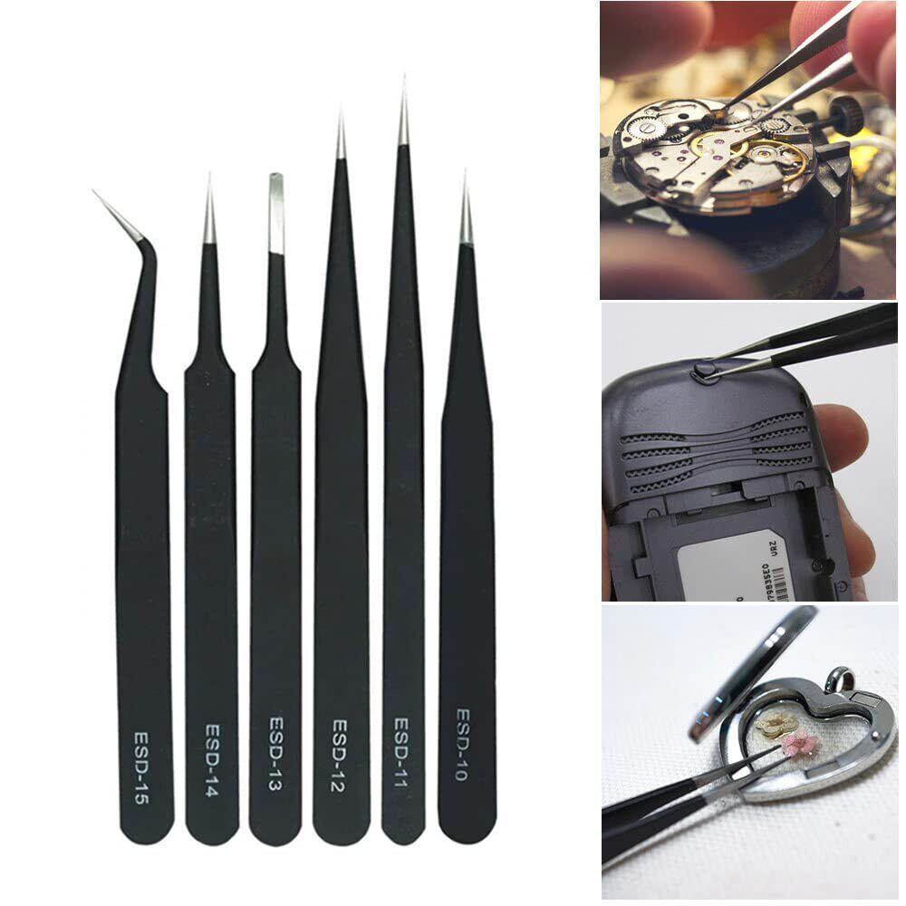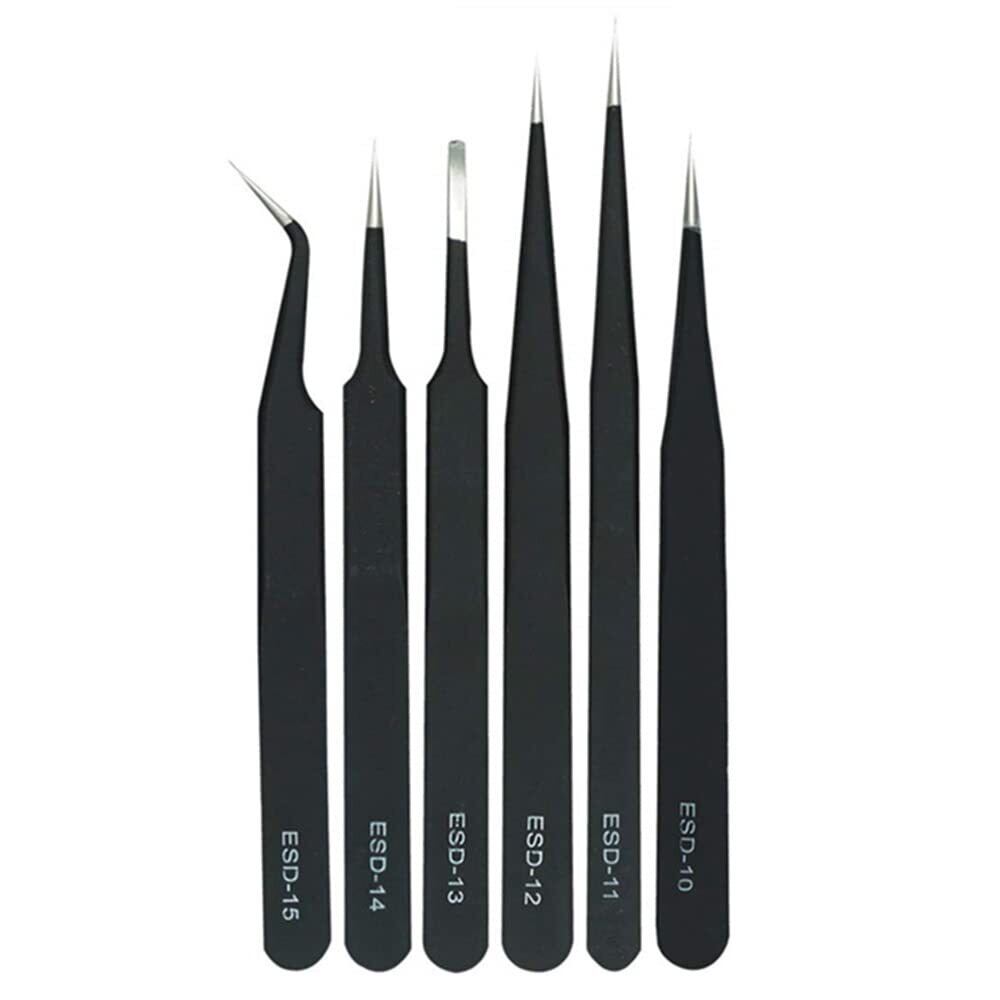 ピンセット 精密 極細 高精度 細い プラモデルピンセット 模型製作 手芸 ツイーザー 防磁 防腐 防錆 耐酸 ステンレス製 厚肉 高耐久 6本セット