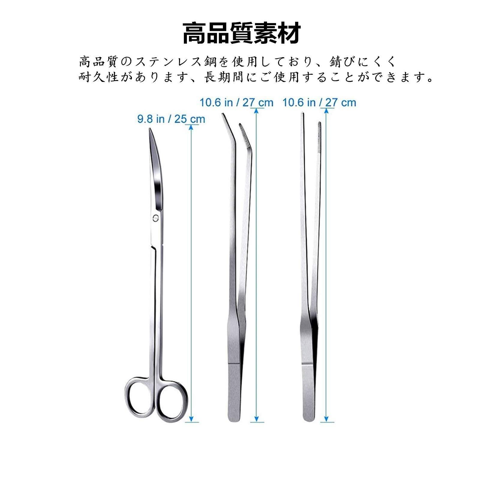水草用トリミング 3点セット ピンセット(ストレート & カーブ) ハサミ(カーブ)