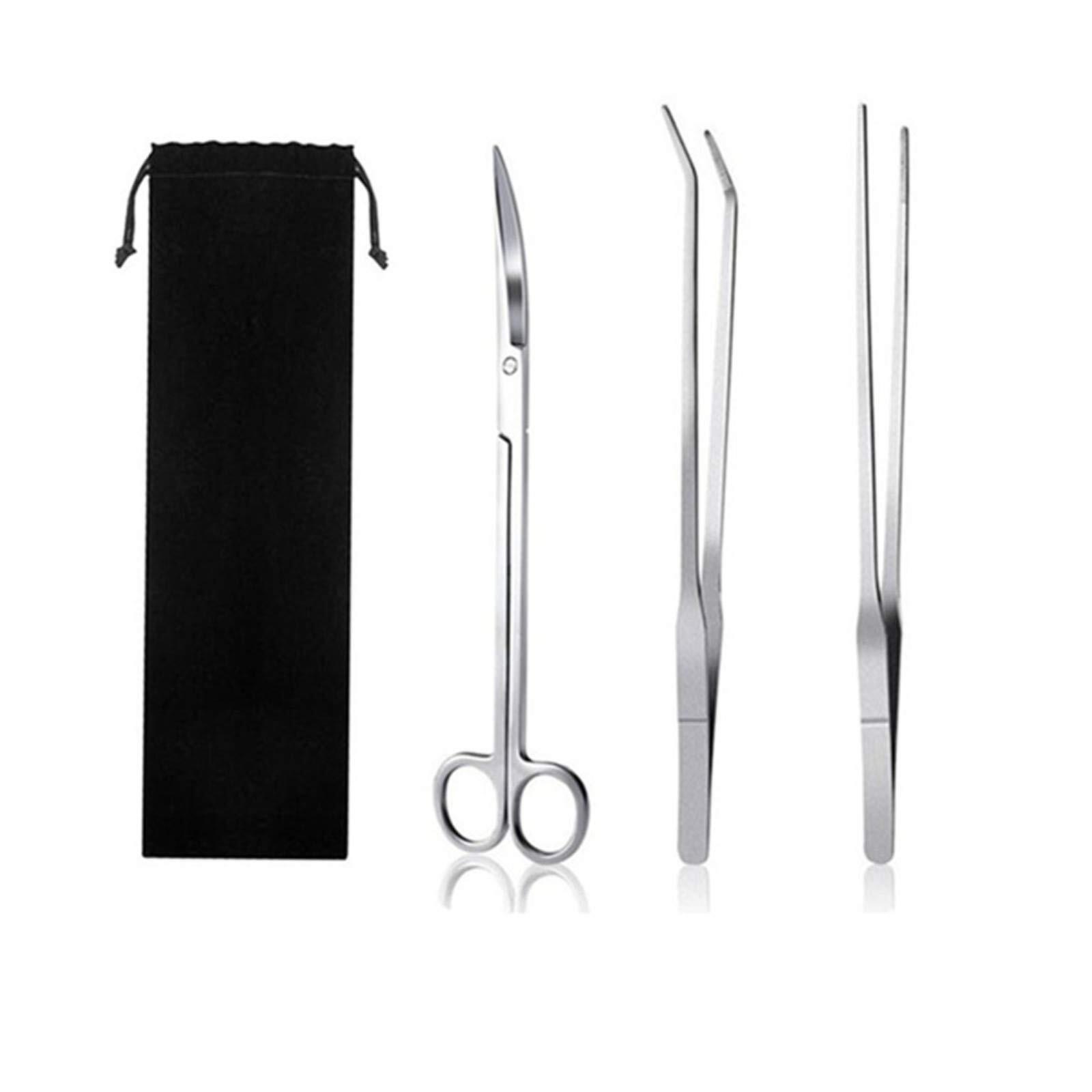 YINKE 水槽 ピンセット & ハサミ 3点セット ステンレス 実用 便利 多機能 水族館用 専用収納袋付