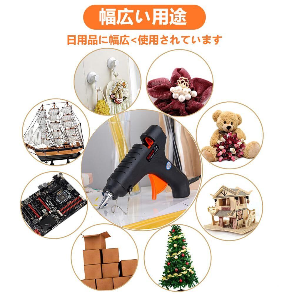 【幅広い用途】グルーガンスティックの強力粘着性で、木材、ガラス、金属、プラスチック、織物、紙、セラ ミックなど様々な材料に使用可能です。日常小さい物の粘着からプロの工事作業までいろいろの場でご利用で きます。工芸品の製作、おもちゃ、電気製品、モデル製作、家具、アクセサリーの修理、クリエイティブカード用、お祝い 用の飾り、DIYプロジェクト、学校の手作りのコースなどに汎用されます。
