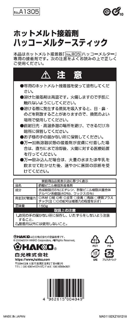 白光(HAKKO) メルター用接着剤 スティックタイプ Φ11.5×150mm 10本入り EVA系 A1305