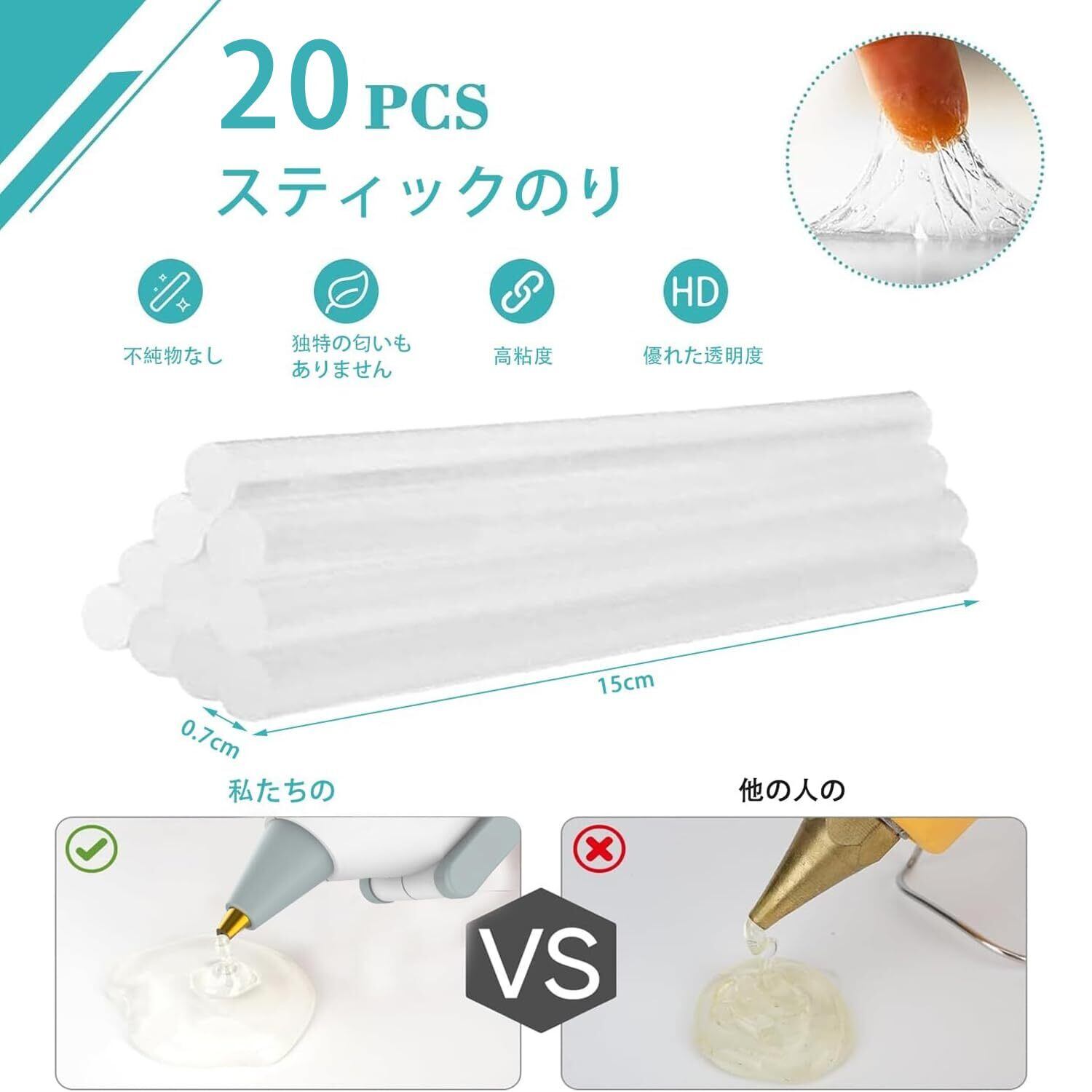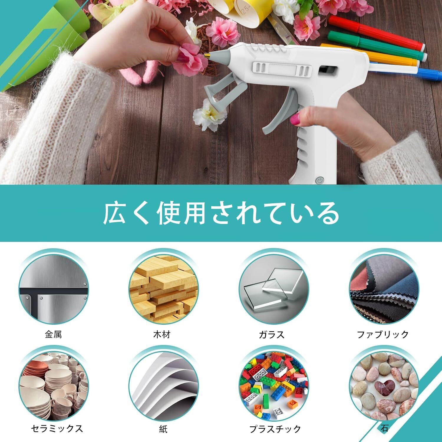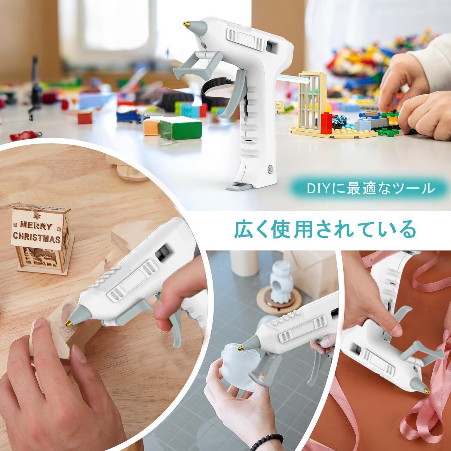 【セット内容】コードレスグルーガン1台、Φ7mm×150mmのグルースティック20本、USB-Cケーブル1本、日本語取扱説明書1冊。