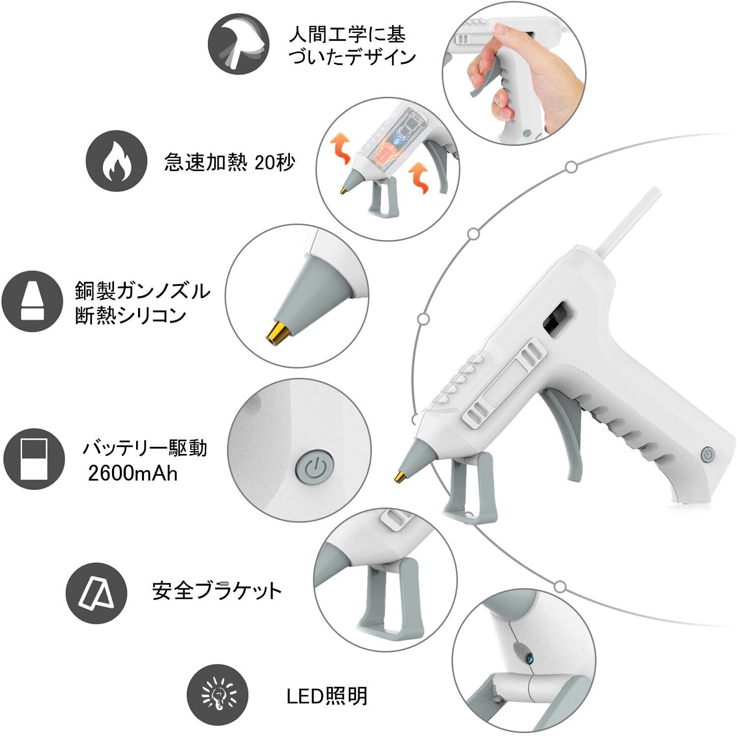 Tigwiss コードレス グルーガンキット 7mm*150mm グルースティック 20本付き ホットボンド コードレスグルーガン 小型 軽量 ぐるーがん DIY 手芸 木工 補修