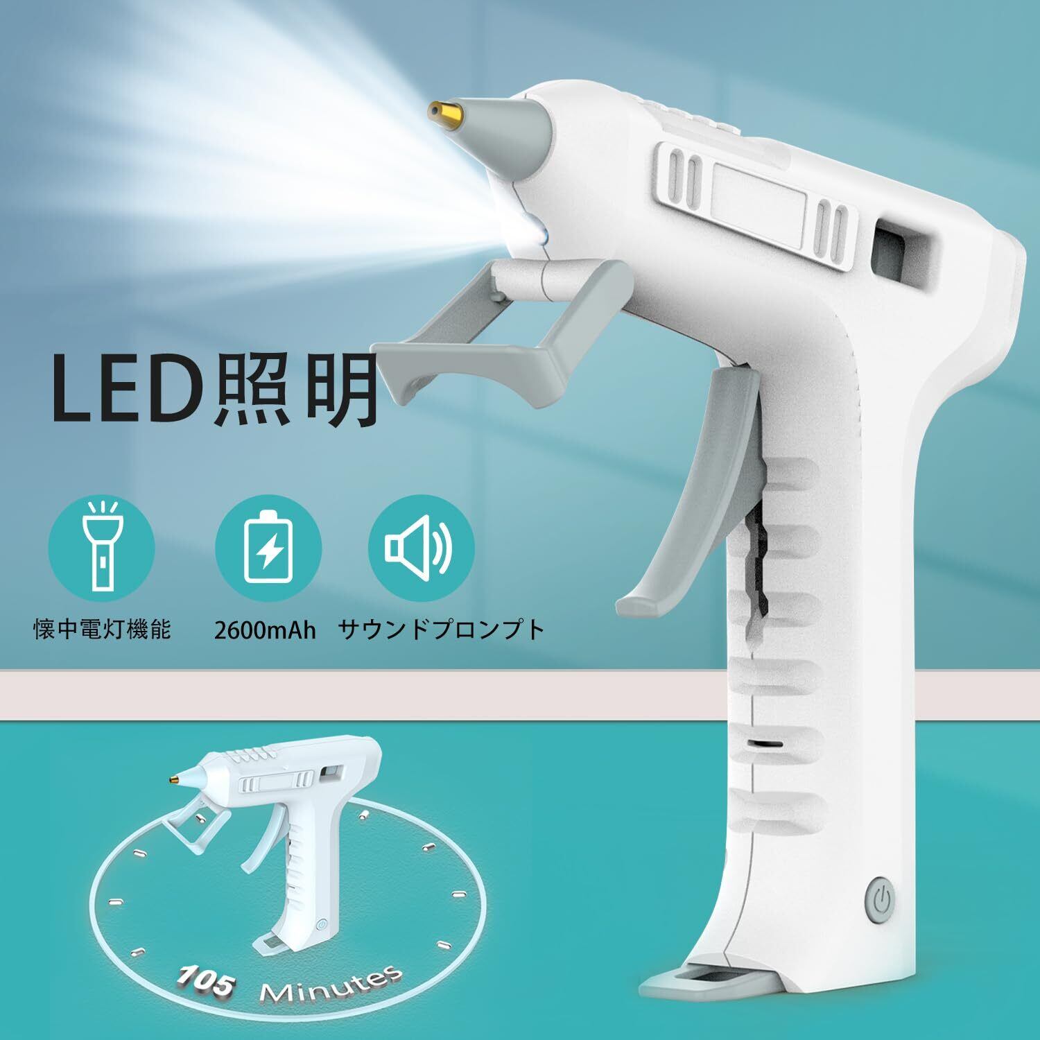 【配線不要で持ち運びも簡単】このホットグルーガンには2600mAhの高品質リチウムイオンバッテリーが装備されており、約120〜150分で完全に充電でき、フル充電での作業時間は最大105分です。 充電状態。 コンパクトなサイズは使用や持ち運びに便利で、コードレス設計なのでどこでも使用でき、電源コードによる制限を心配する必要はありません。