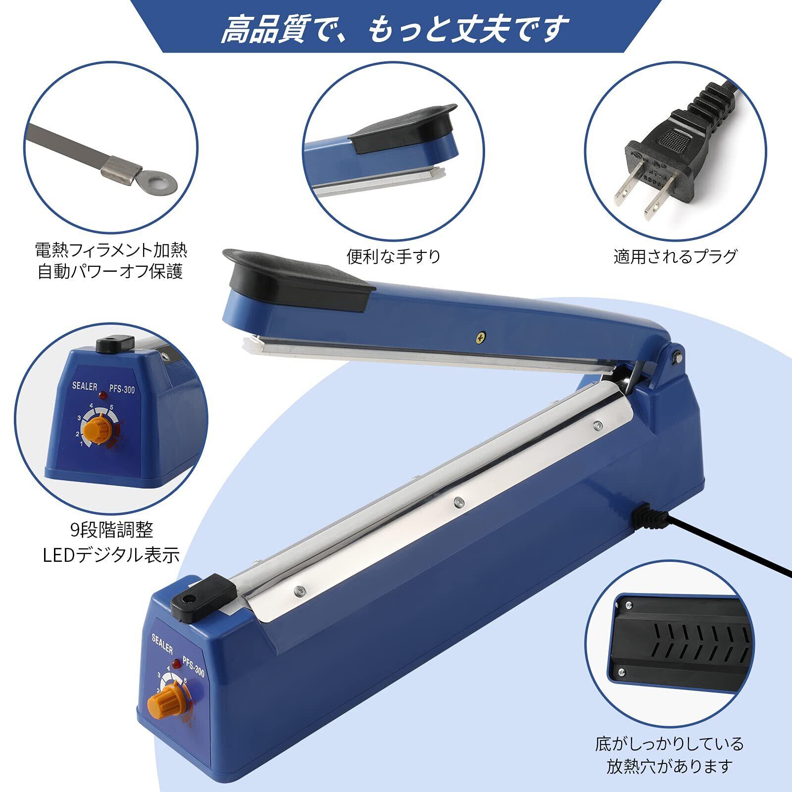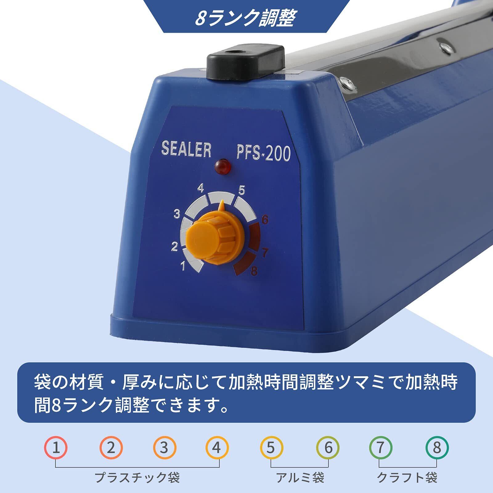 業務用シーラー、温度は8段階に調整可能です、 プラスチック製のボディは丈夫で壊れにくく、様々な袋に対応しています!ィは丈夫で壊れにくく、様々な袋に対応しています!