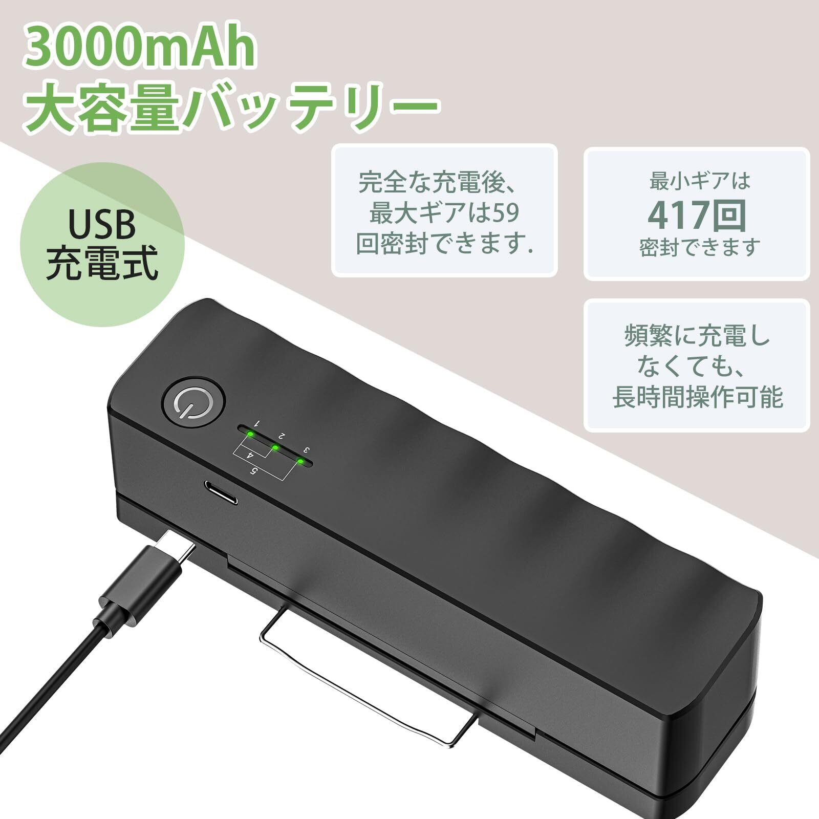 「USB充電式&小型」容量3000mAhバッテリーを内蔵されて、頻繁に充電しなくても、長時間操作可能。完全な充電後、最大ギアは59回密封できます.最小ギアは417回密封できます。製品の全長は15.5 cm。コンパクトで携帯便利。自宅や旅行先での使用に適しています。