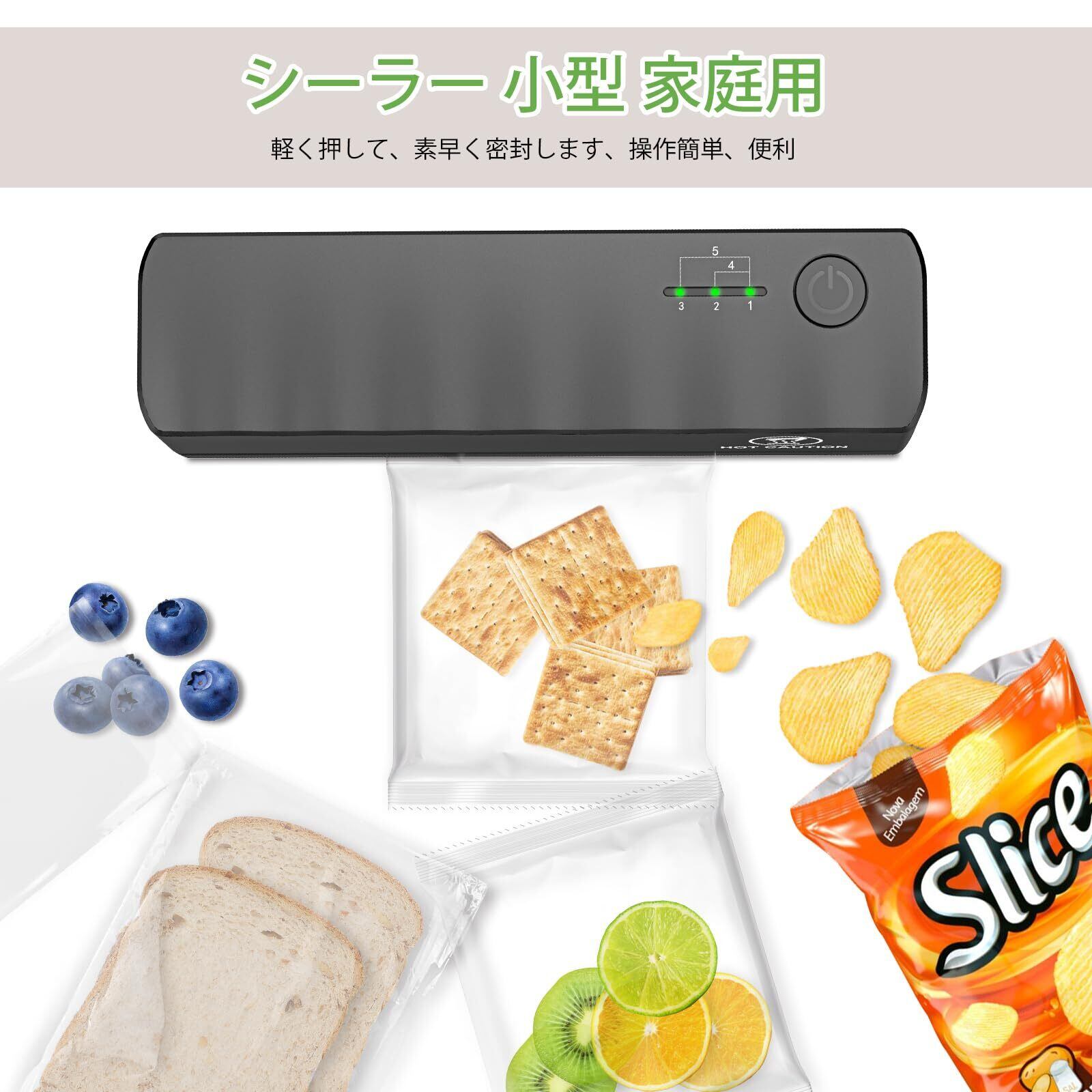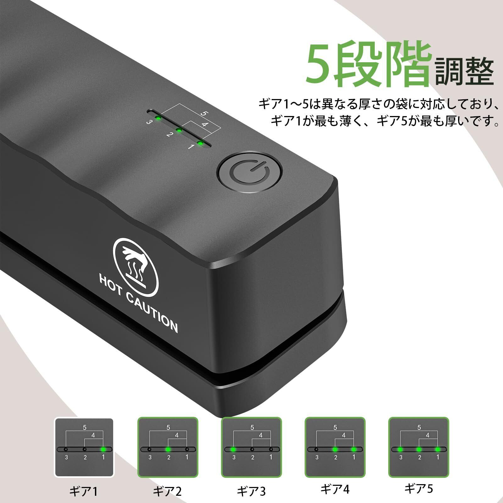 「5段階調整」5段階調節で、それぞれ厚袋、普通袋、極薄袋に対応している。ギア1が最も薄く、ギア5が最も厚いです。食品や果物を密封して保存するのに役立ちます。