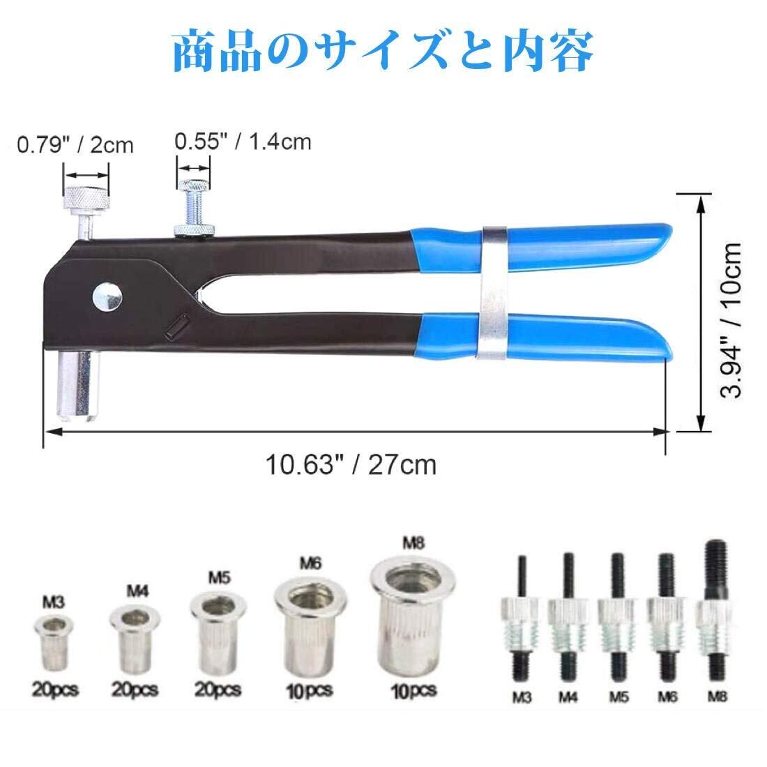 ハンドリベッターセット M3/M4/M5/M6/M8 ネジ付き ナット リベット インサート ツール 86個 リベット セット スチールアルミリベット工具セット