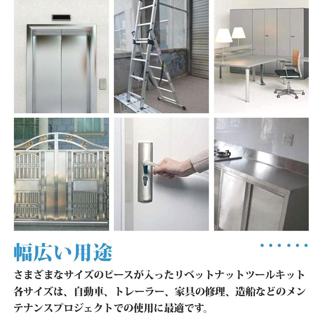 【幅広い用途】さまざまなサイズのピースが入ったリベットナットツールキット各サイズは、自動車、トレーラー、家具の修理、造船などのメンテナンスプロジェクトでの使用に最適です。