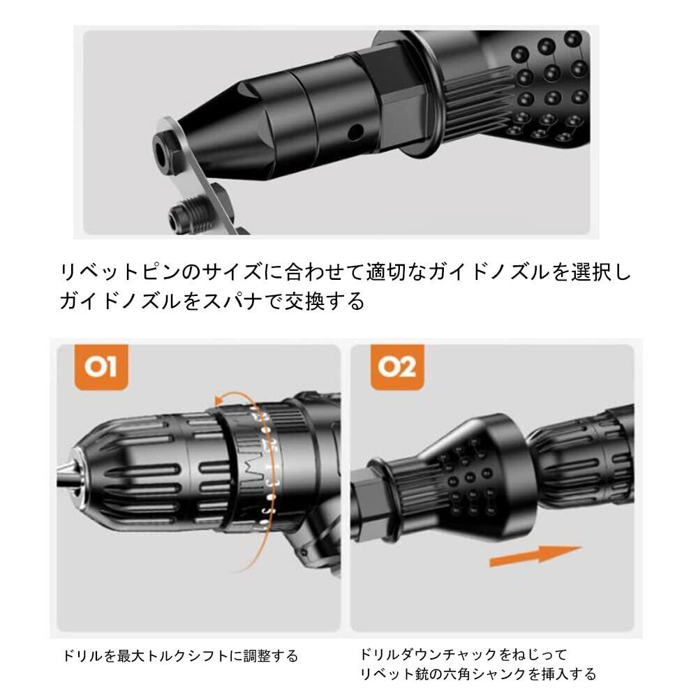コードレスドリル用 リベットガン リベットナットガン リベットツール コードレスリベットドリル アダプタインサートナットツール