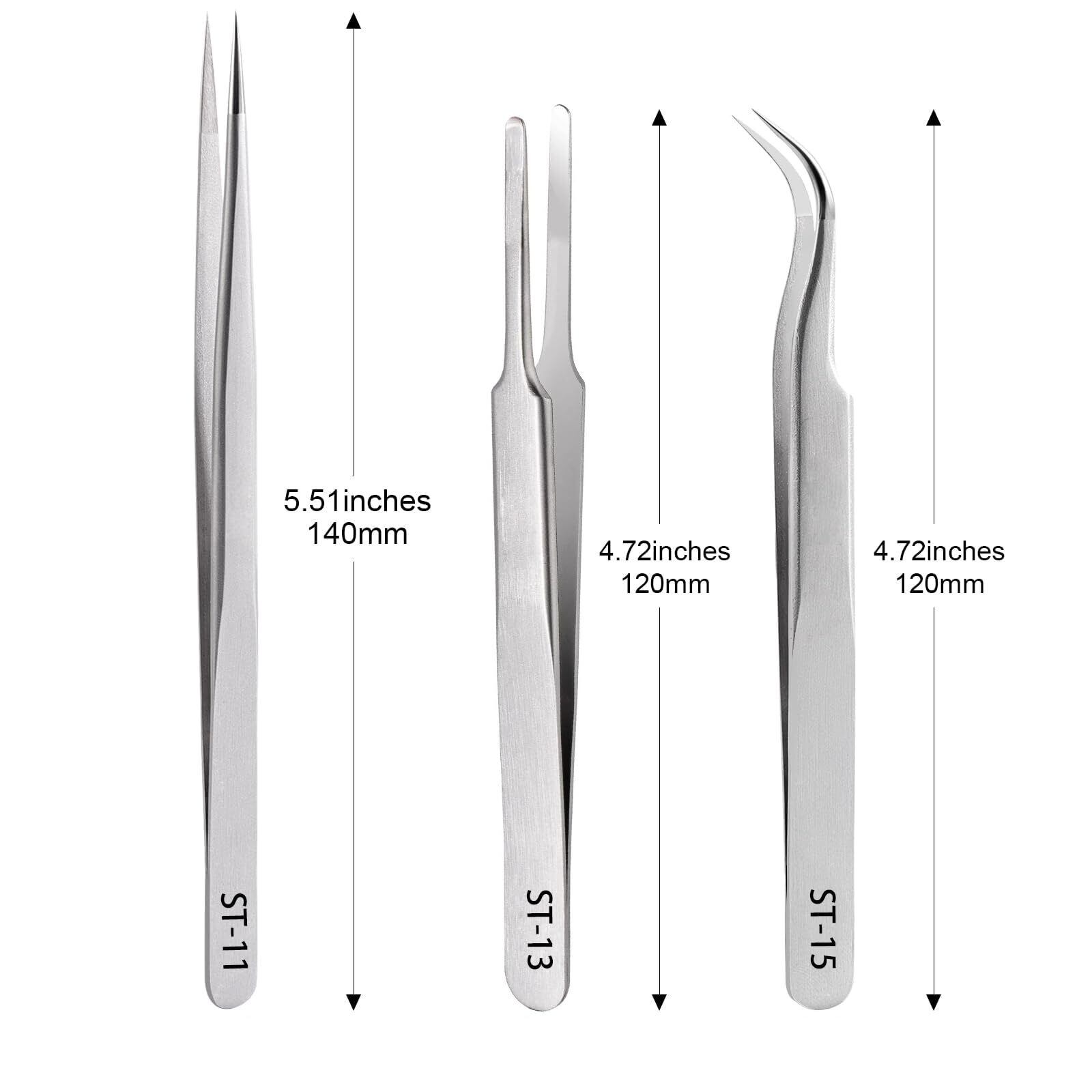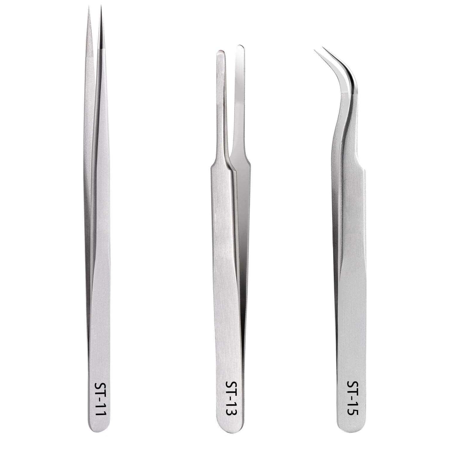 EDu 精密 ピンセット 精密 極細 高精度 細い まつ毛 ネイルピンセット 手芸 ツイーザー ステンレス製 3本セット