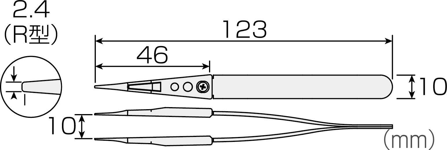 ホーザン(HOZAN) 非粘着チップピンセット 全長123mm 開き幅10mm 先端幅2.4mm R型 P-643-N