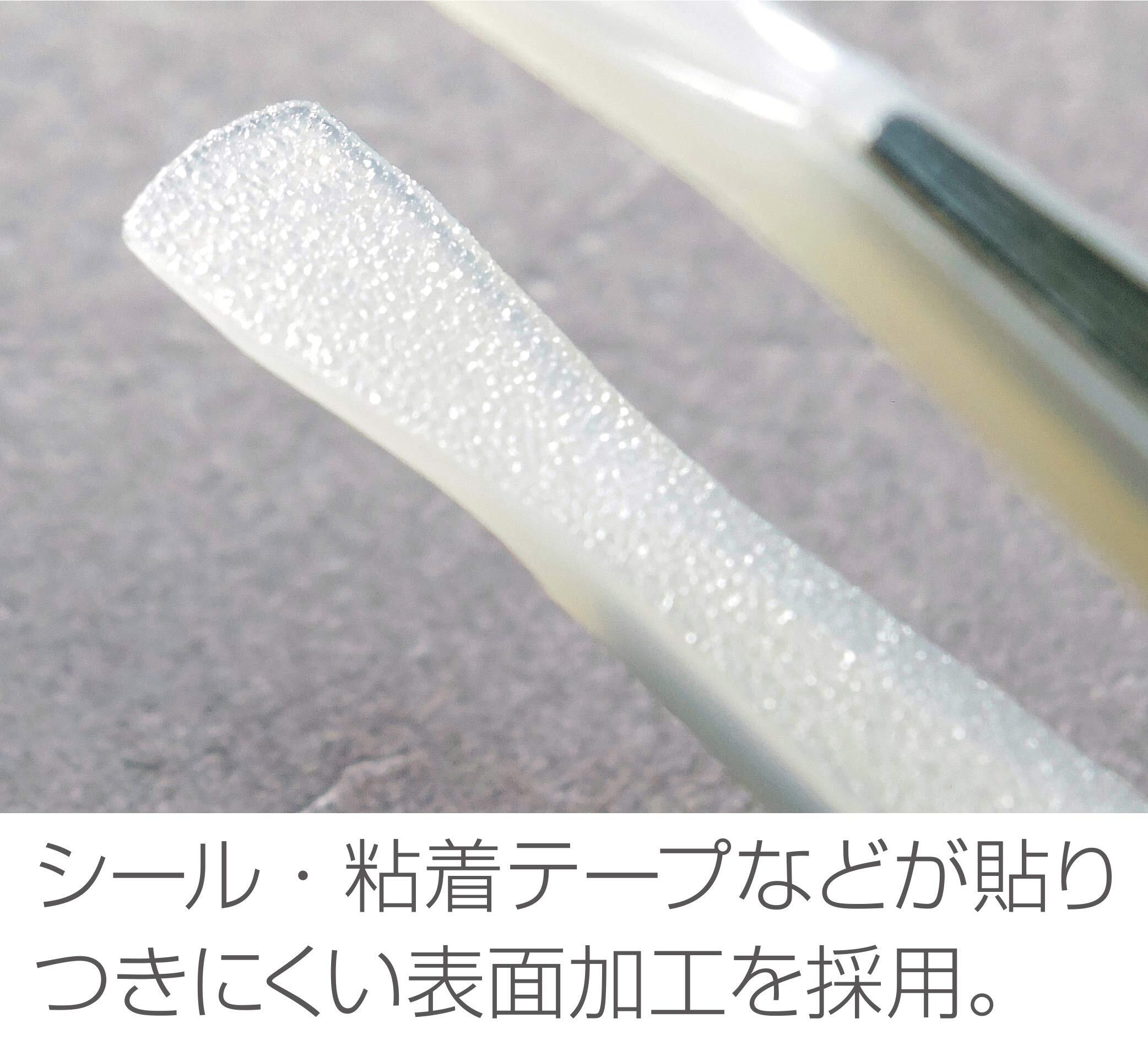 シール・粘着テープなどが貼りつきにくく、耐薬品性、非磁性、耐油性を持つ特殊素材のピンセットです。さらに、環境にも配慮したRoHS対応。