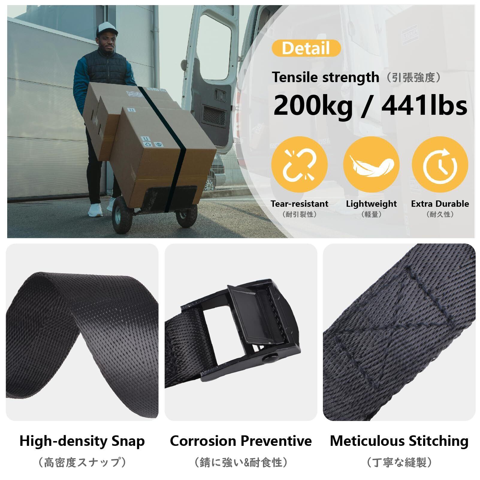 【安全】破断強度200kg;ラッシングベルは効率的で荷重と安全引張力が強く、荷物を傷つけず、丈夫で柔軟性と耐久性が優れています