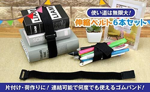 【セット内容】2.5㎝x15㎝ 伸縮タイプのマジック式結束ベルト6本セット(オス側3㎝、メス側10㎝、金具2㎝)最大伸長率約150%