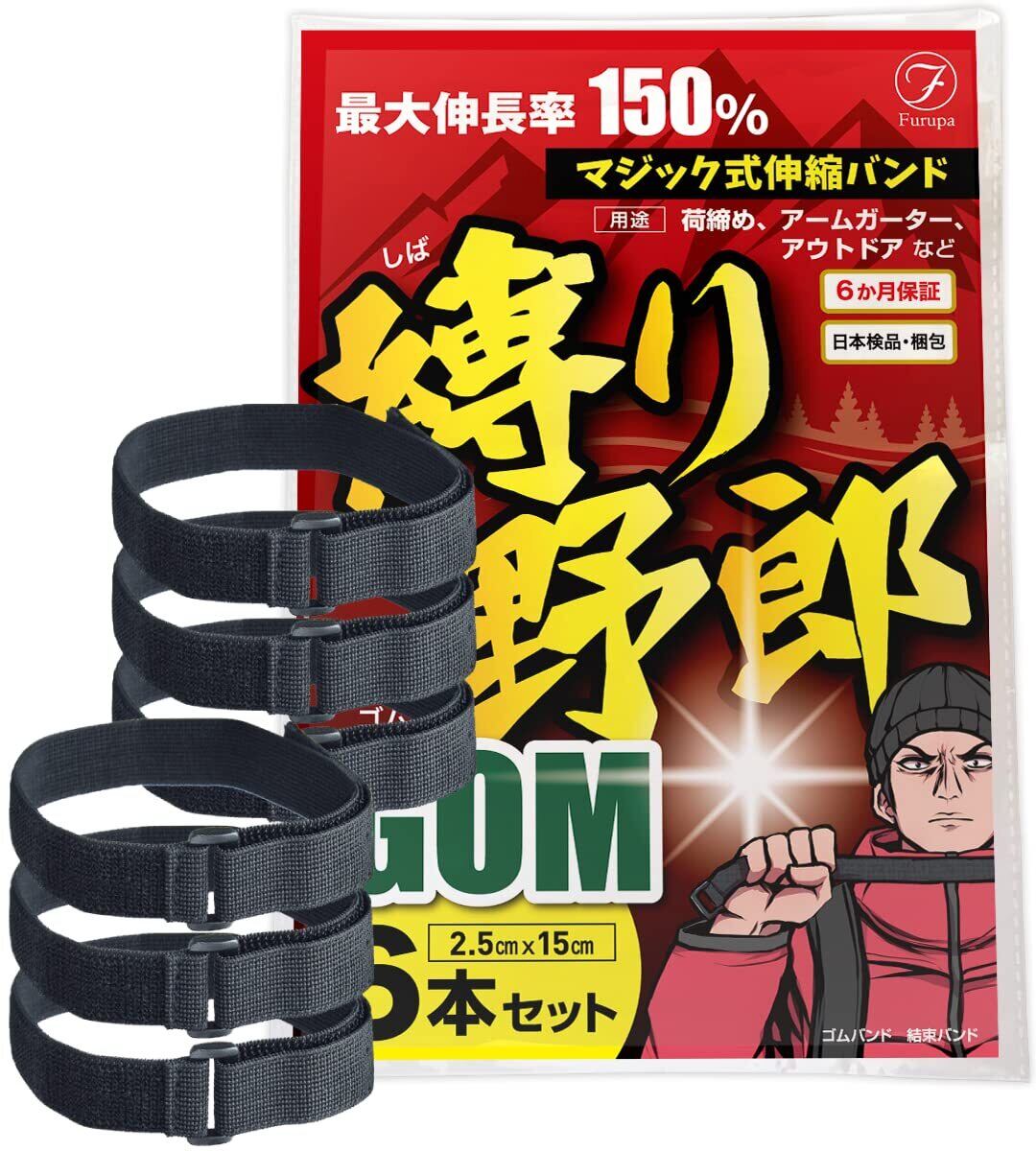 フルパ ゴムバンド マジック式 「縛り野郎GOM」 伸縮ベルト 結束バンド 固定 荷締めベルト ワンタッチベルト (2.5cm×15cm 6本)…
