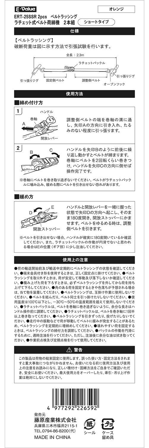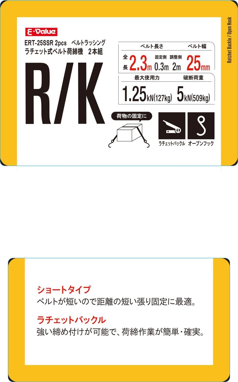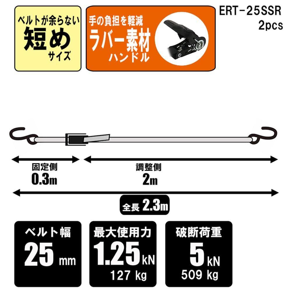 イーバリュー(E-Value) ラチェット式ベルト荷締機 ショートタイプ ERT-25SSR 2pcs 2.3m