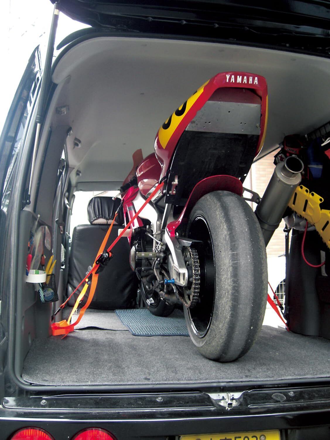●1BOX車の中でバイクを固定したり、ルーフキャリアに荷物を積むのに便利