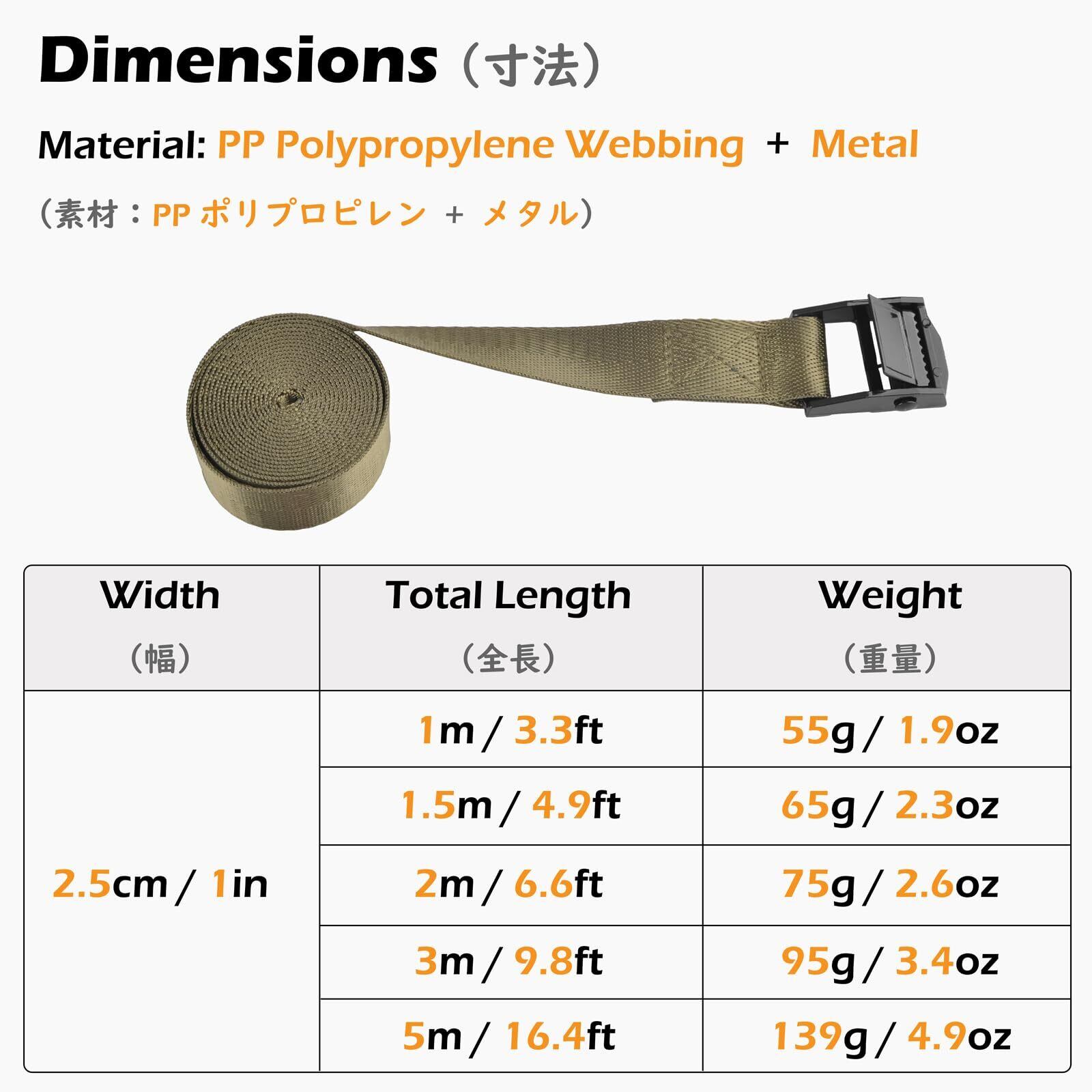 サイズ調整可能: 長さ1mから5mまで、幅2.5cmで、用途に合わせてサイズ調整が可能です
