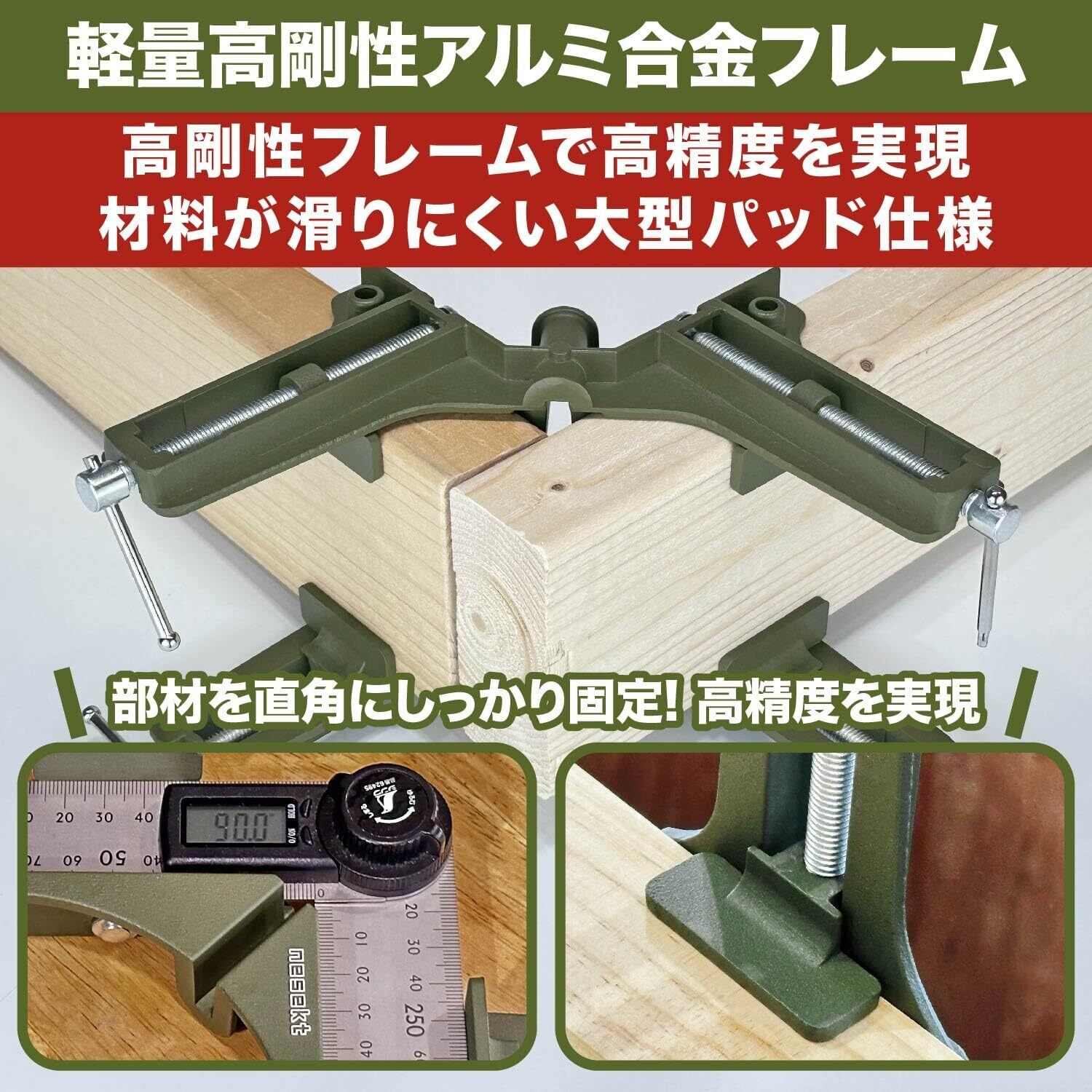 [ネセクト] コーナークランプ プロフェッショナル 粉体塗装オリーブグリーン4個セット 高精度アルミ合金 木工DIY 直角固定[日本企画3年]