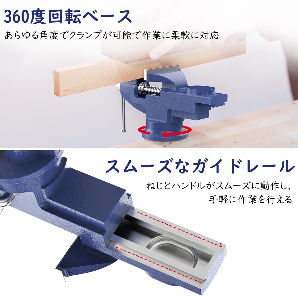 「360°回転式ベースで多様な作業をサポート」本バイスは作業の角度を自由に調整できる360°回転式のベースを採用しており、金属加工やパイプ切断、アンビルでの打撃作業など、あらゆる作業に対応可能です。狭いスペースでも作業しやすく、あらゆる角度からの作業を快適にサポートし、回転機能が優れており、作業の効率性が確実に向上させることが対応してくれます。